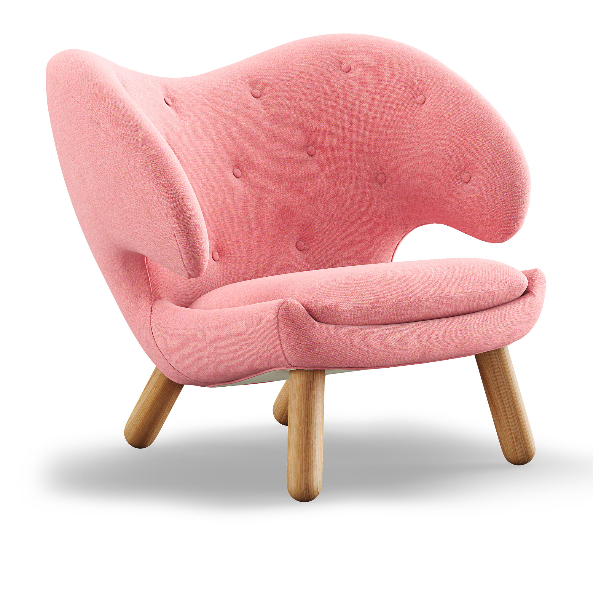 House of Finn Juhl - Pelican Chair With Buttons, Dark oiled oak, Cat. 3 Watercolour, Rose Quartz - Fåtöljer - Finn Juhl - Rosa,Träfärgad - Trä/Textilmaterial