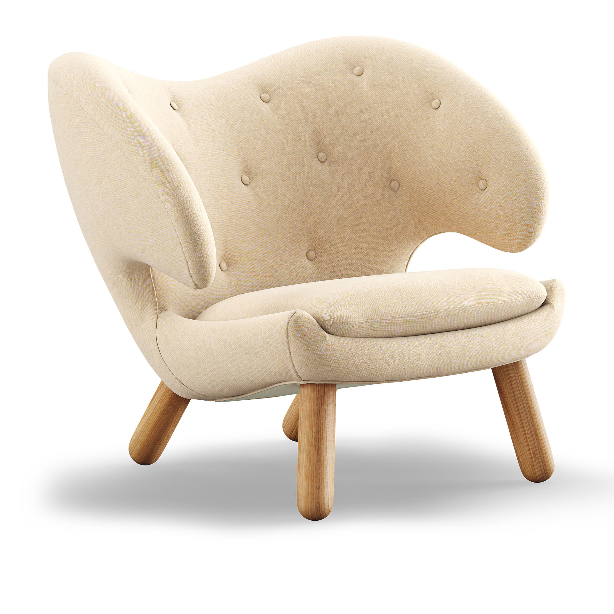 House of Finn Juhl - Pelican Chair With Buttons, Dark oiled oak, Cat. 3 Watercolour, Soft Linen - Fåtöljer - Finn Juhl - Beige,Träfärgad - Trä/Textilmaterial