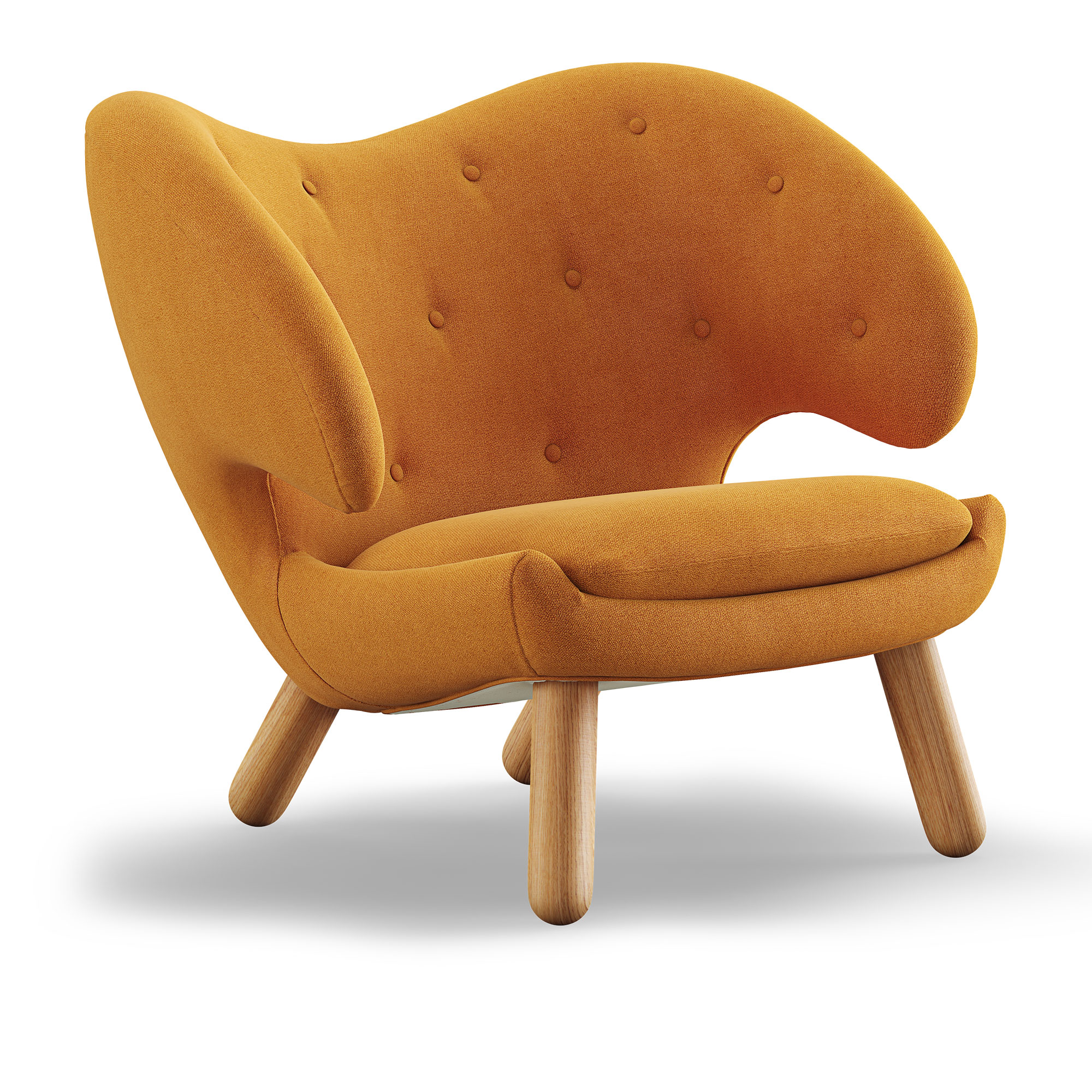 Pelikanstolen – Med knappdetaljer är en designklassiker skapad av den berömda formgivaren Finn Juhl år 1940. Denna unika och drömska stol återupptäcktes och började åter tillverkas av House of Finn Juhl år 2001, efter en period då den varit nästan helt försvunnen från marknaden på grund av det begränsade antalet exemplar som producerades under Juhls livstid. Stolens design är framträdande för sin naturliga och skulpturlika silhuett som skapar en inbjudande känsla, likt en varm omfamning. Klädseln är av textil och den är utrustad med en mjuk sittplymå. Dess ben finns tillgängliga i två träslag: ek och valnöt. Denna modell av Pelikanstolen är prydd med knappar, men den finns också i en version utan knappar, känd som Pelican Chair. Den första presentationen av Pelikanstolen – Med knappar ägde rum vid Copenhagen Cabinetmakers’ Guild Exhibition 1940. Den gjorde ett starkt intryck med sin ovanliga utformning och robusta ben. Pelikanstolen – Med knappar står som ett framstående exempel på Finn Juhls innovativa designfilosofi och hans förmåga att ligga före sin tid. Denna symboliska stol är en perfekt match för många samtida heminredningar och kan med fördel paras ihop med Pelican Bordet från samma kollektion och Poet Sofa som lanserades 1941. På vår webbplats presenterar vi ett urval av tillgängliga varianter, medan fullständiga alternativ kan hittas i vårt produktblad. Om du önskar en annan variant eller behöver hjälp med din beställning, tveka inte att kontakta oss.