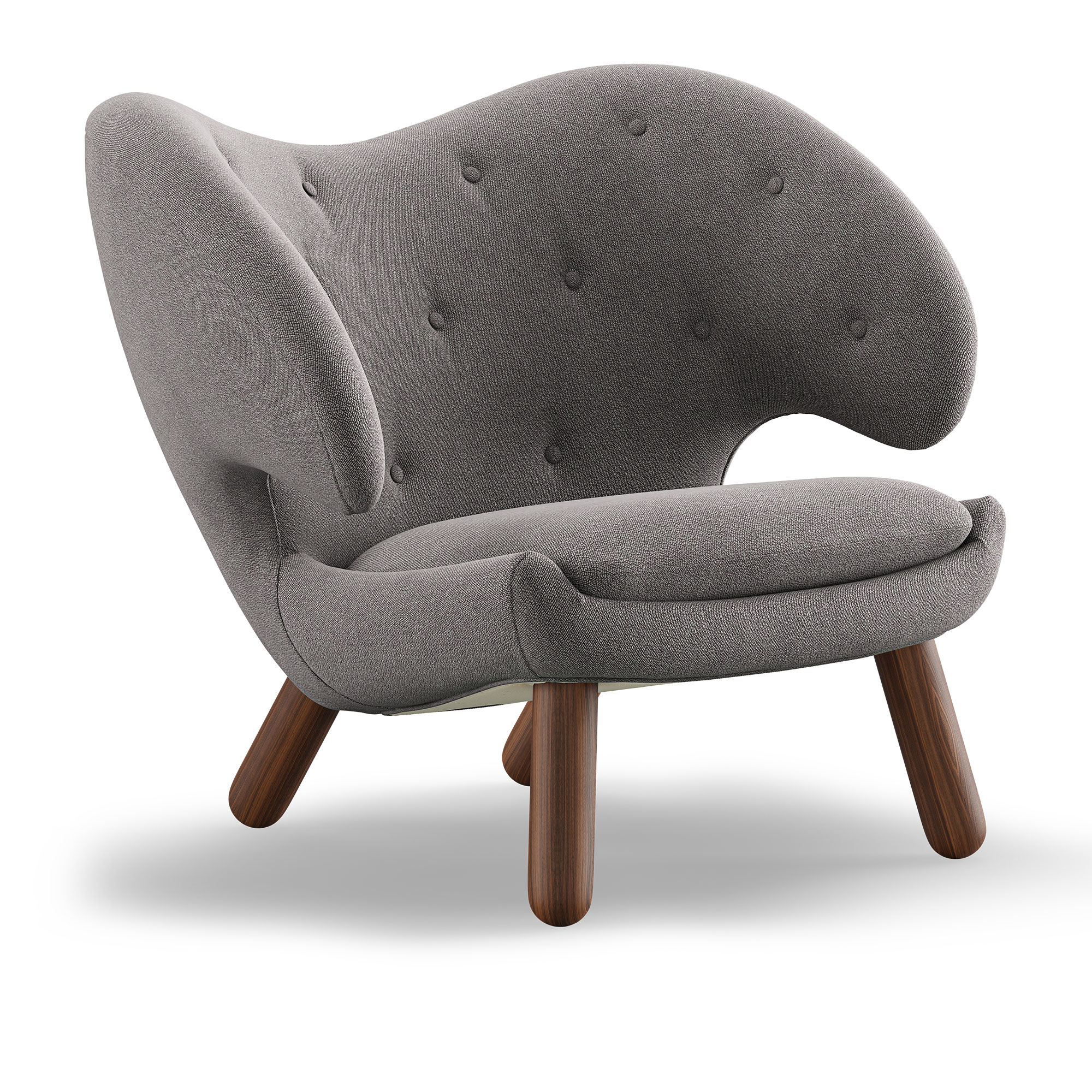 House of Finn Juhl - Pelican Chair With Buttons, Walnut, Cat. 4 Vidar 152 - Fåtöljer - Finn Juhl - Träfärgad,Grå - Trä/Textilmaterial