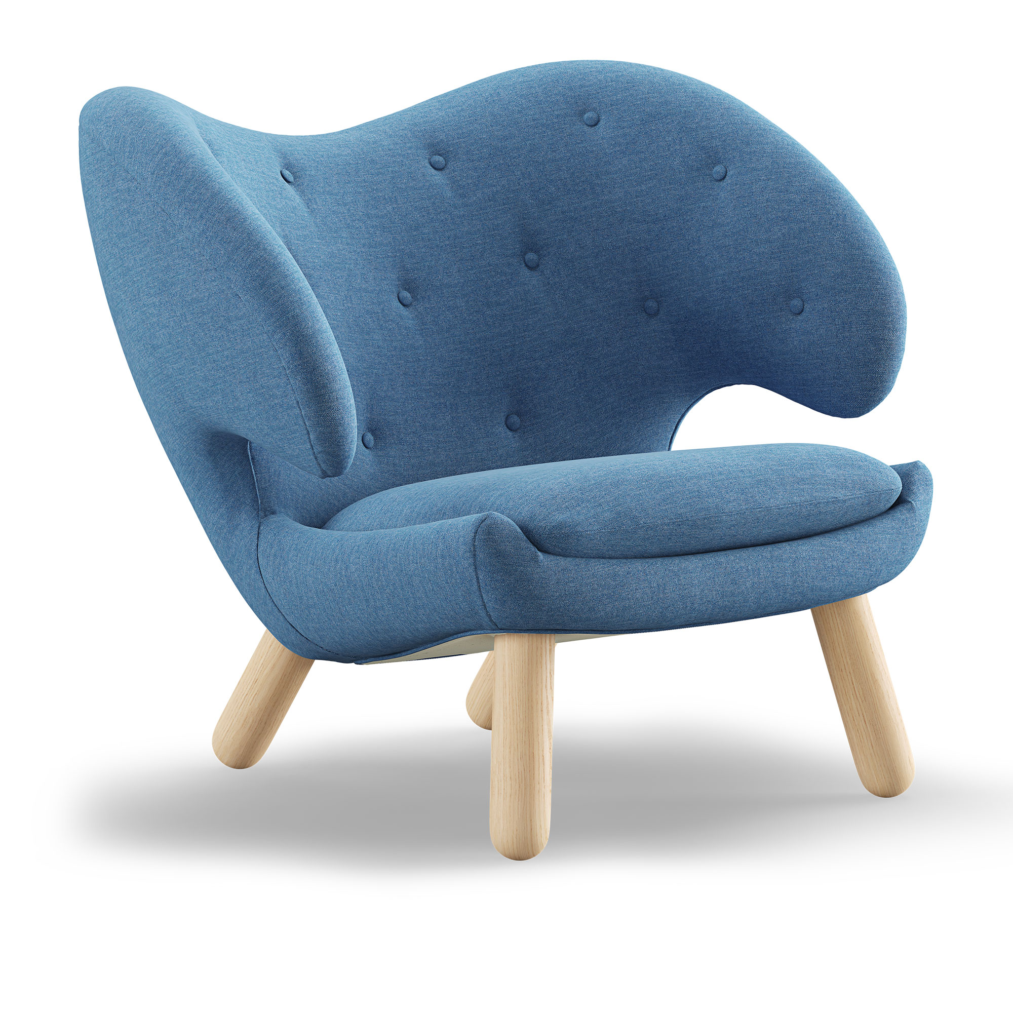 House of Finn Juhl - Pelican stol With Buttons, Clear oiled oak, Cat. 1 Remix 762 - Fåtöljer - Finn Juhl - Träfärgad,Blå - Trä/Textilmaterial