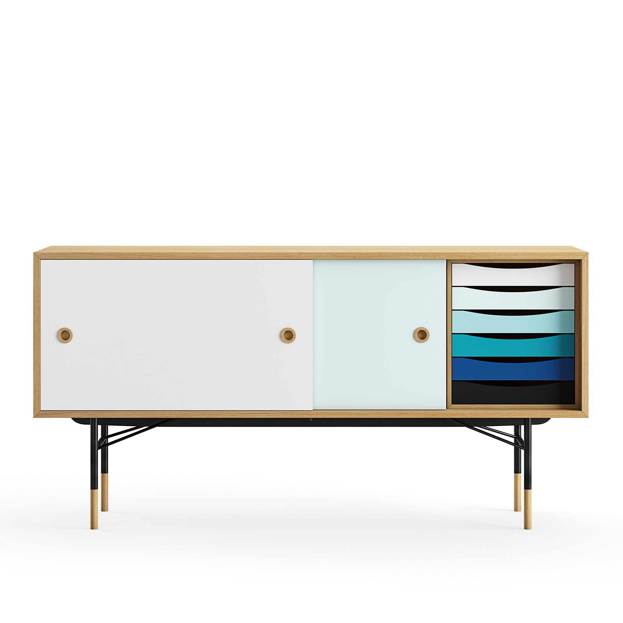 House of Finn Juhl - Sideboard With Tray Unit, Dark oiled oak, White/Light Blue, Black Steel, Cold - Skänkar och sideboards - Finn Juhl - Flerfärgad - Metall/Trä