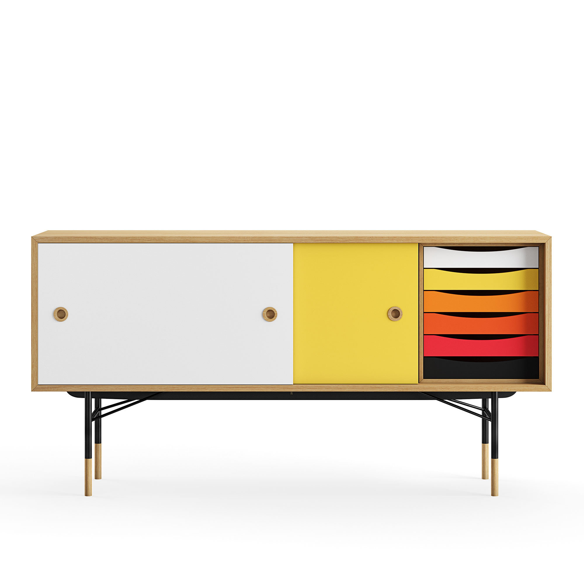 House of Finn Juhl - Sideboard With Tray Unit, Dark oiled oak, White/Yellow, Black Steel, Warm - Skänkar och sideboards - Finn Juhl - Flerfärgad - Metall/Trä