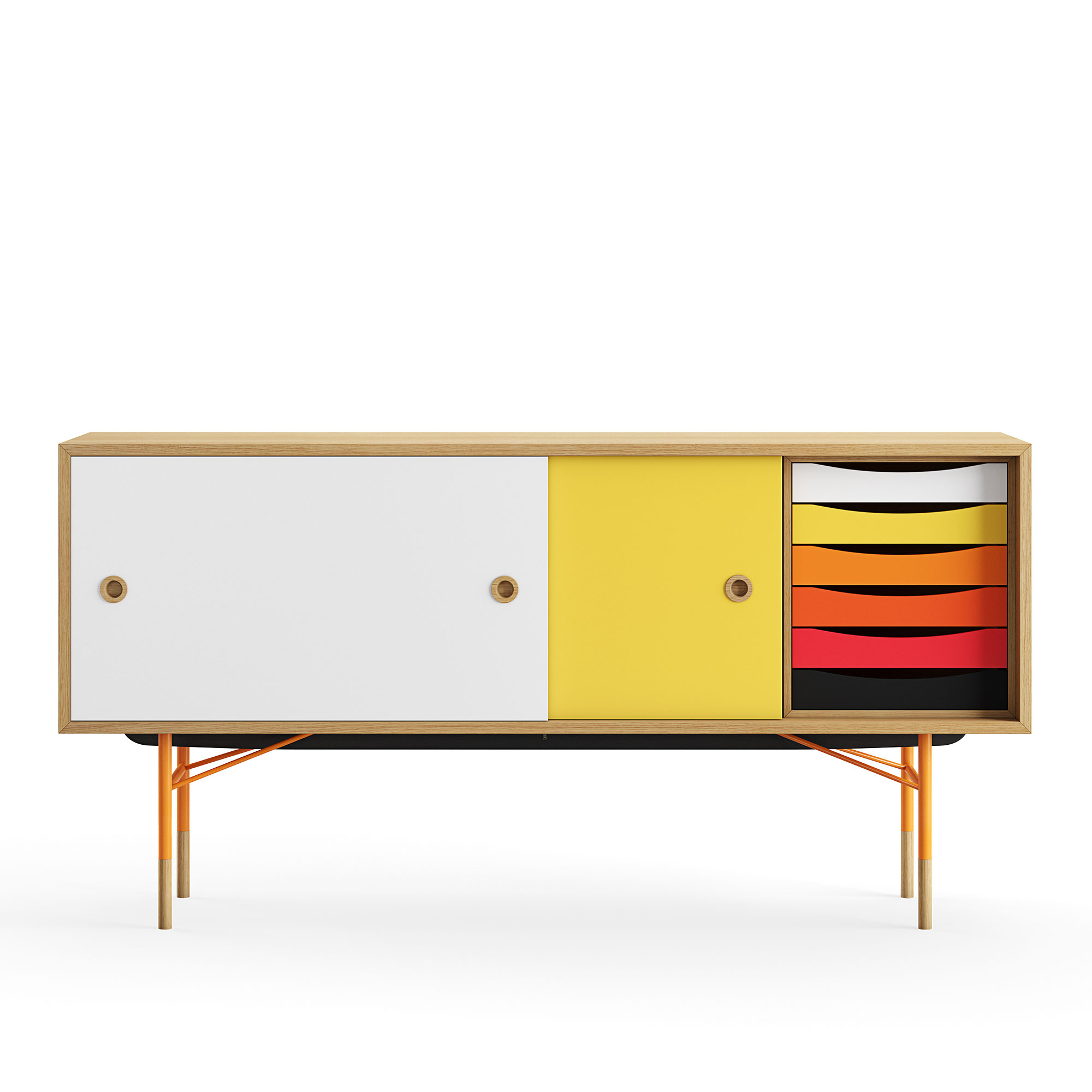 House of Finn Juhl - Sideboard With Tray Unit, Dark oiled oak, White/Yellow, Orange Steel, Warm - Skänkar och sideboards - Finn Juhl - Flerfärgad - Metall/Trä