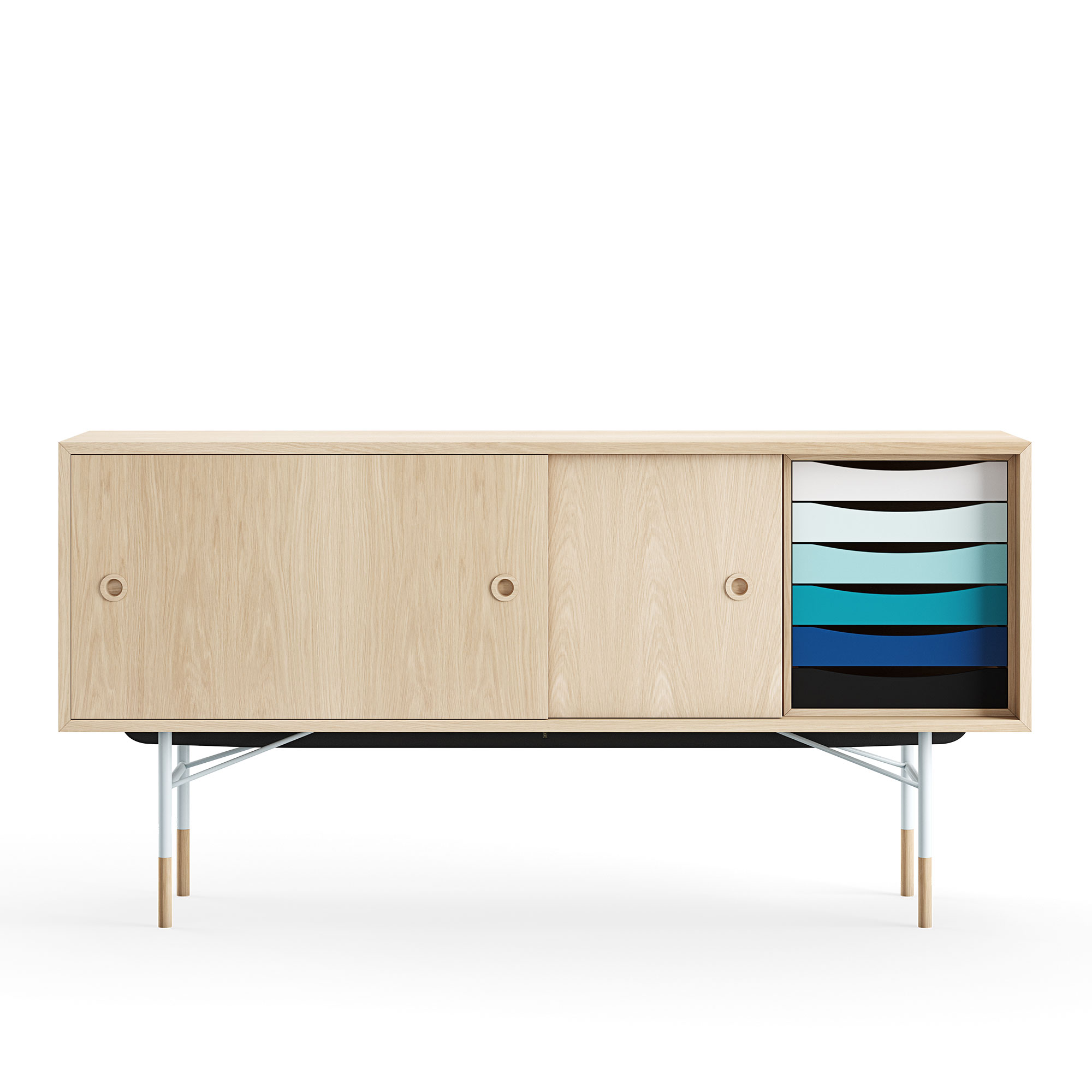 House of Finn Juhl - Sideboard With Tray Unit, Oak Veneer, Light Blue Steel, Cold - Skänkar och sideboards - Finn Juhl - Träfärgad - Metall/Trä