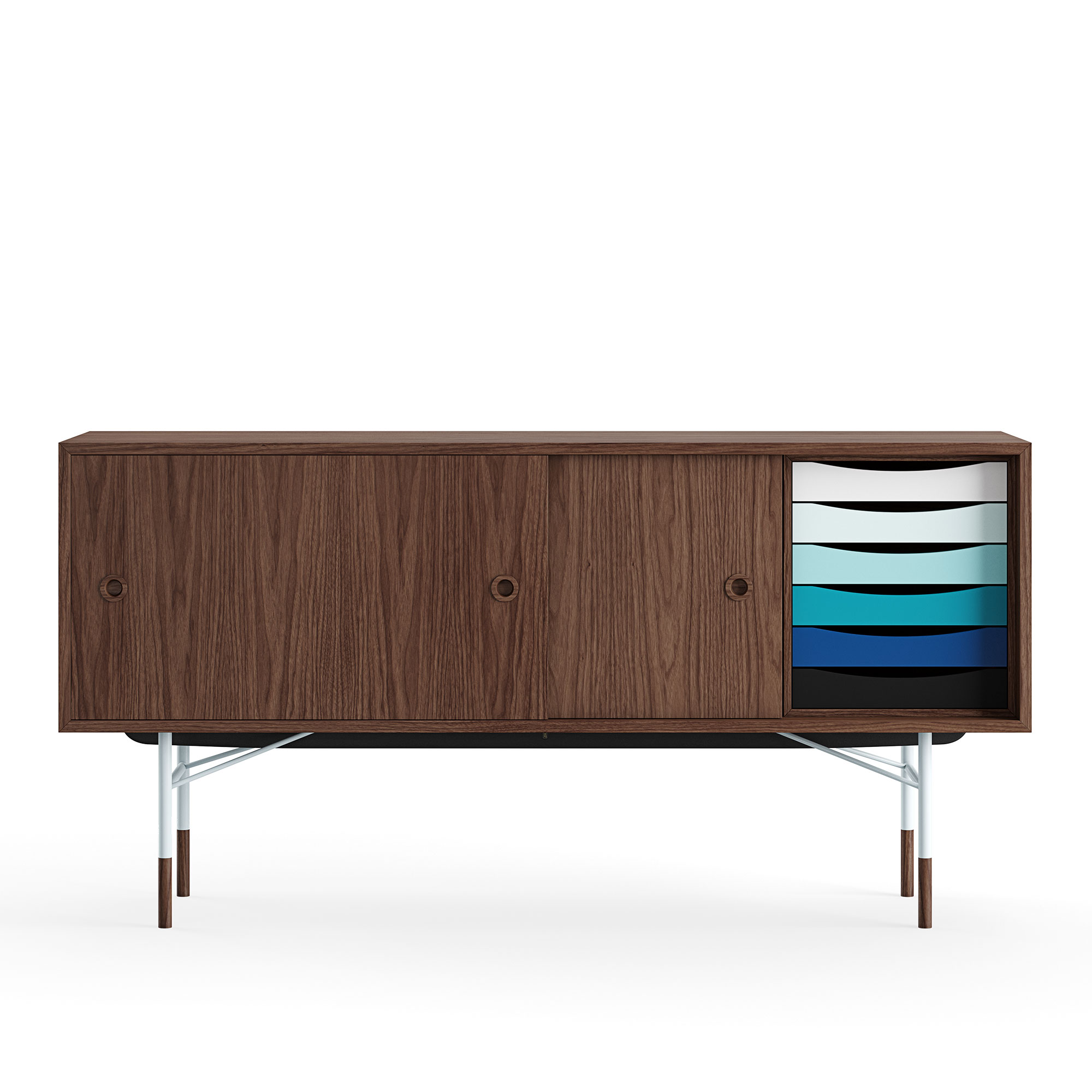 House of Finn Juhl - Sideboard With Tray Unit, Walnut Veneer, Light Blue Steel, Cold - Skänkar och sideboards - Finn Juhl - Träfärgad - Metall/Trä