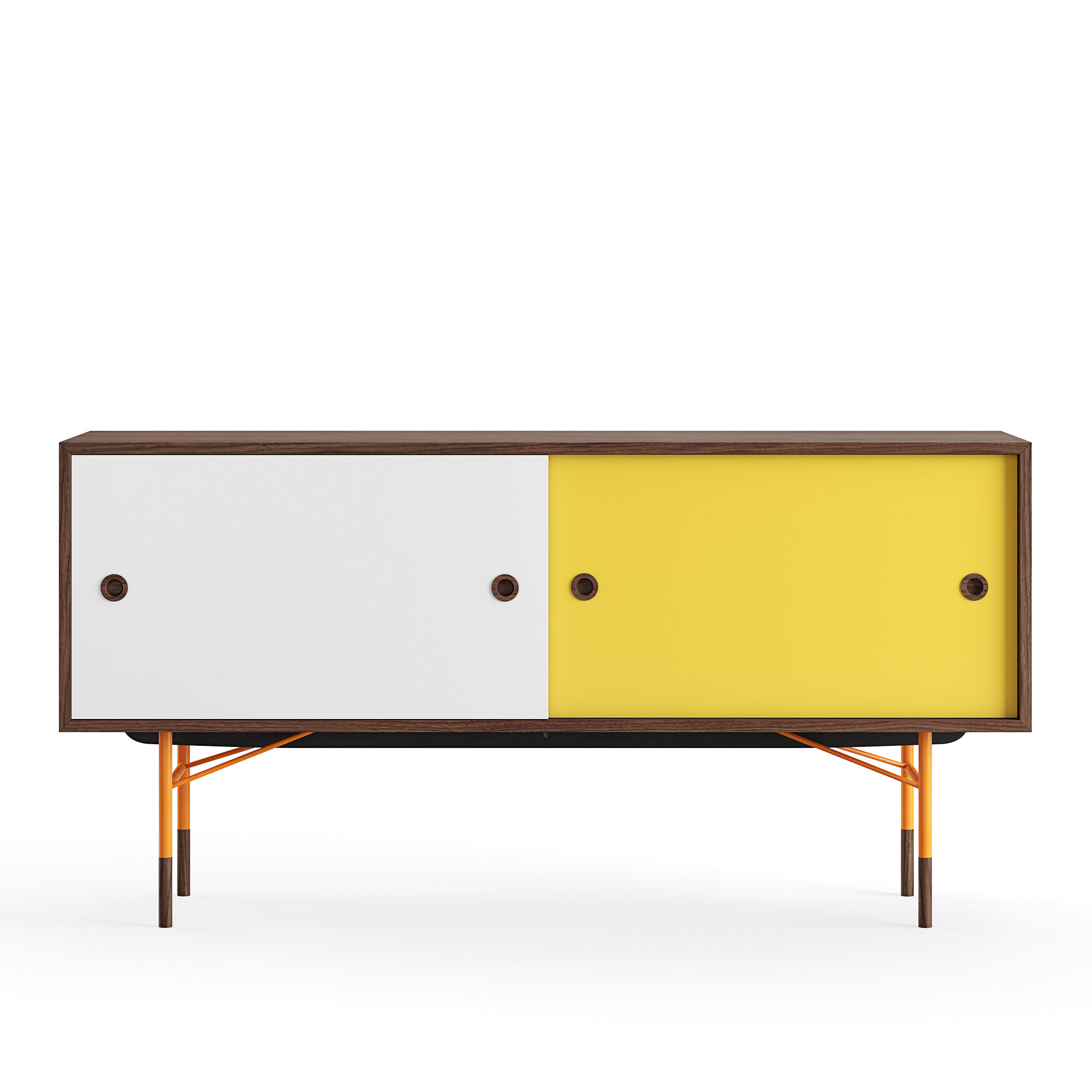 House of Finn Juhl - Sideboard Without Tray Unit, Walnut, White/Yellow, Orange Steel - Skänkar och sideboards - Finn Juhl - Flerfärgad - Metall/Trä