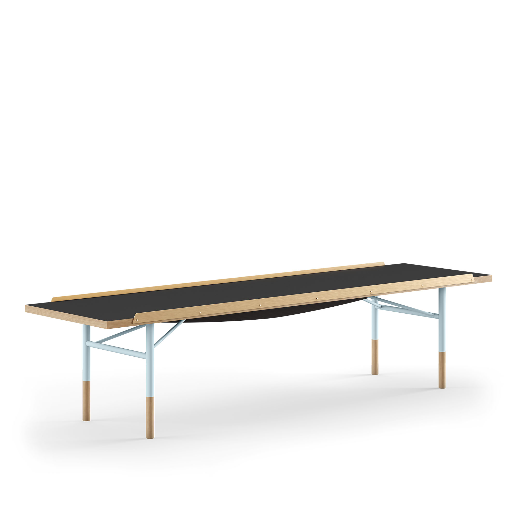 House of Finn Juhl - Table Bench Large, With Brass Edges, Black Linoleum, Light Blue Steel - TV-bänkar - Finn Juhl - Träfärgad,Svart,Blå - Metall/Trä/Plast