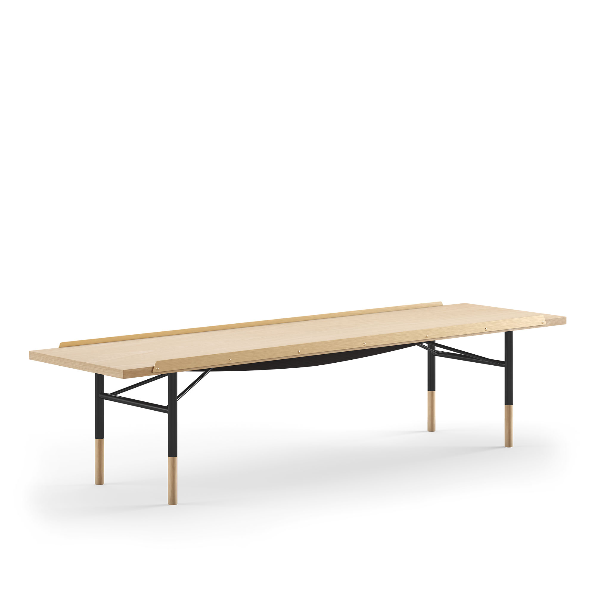 House of Finn Juhl - Table Bench Large, With Brass Edges, Oak, Black Steel - TV-bänkar - Finn Juhl - Träfärgad,Svart - Metall/Trä