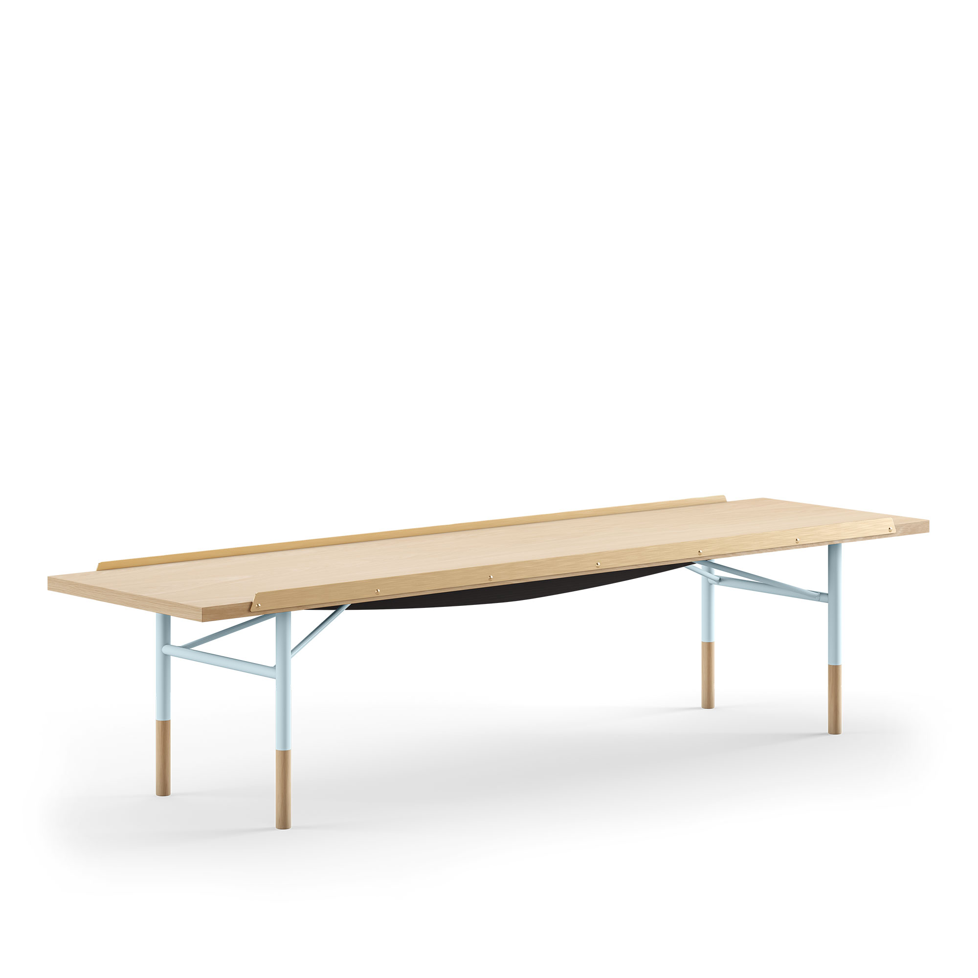 House of Finn Juhl - Table Bench Large, With Brass Edges, Oak, Light Blue Steel - TV-bänkar - Finn Juhl - Träfärgad,Blå - Metall/Trä