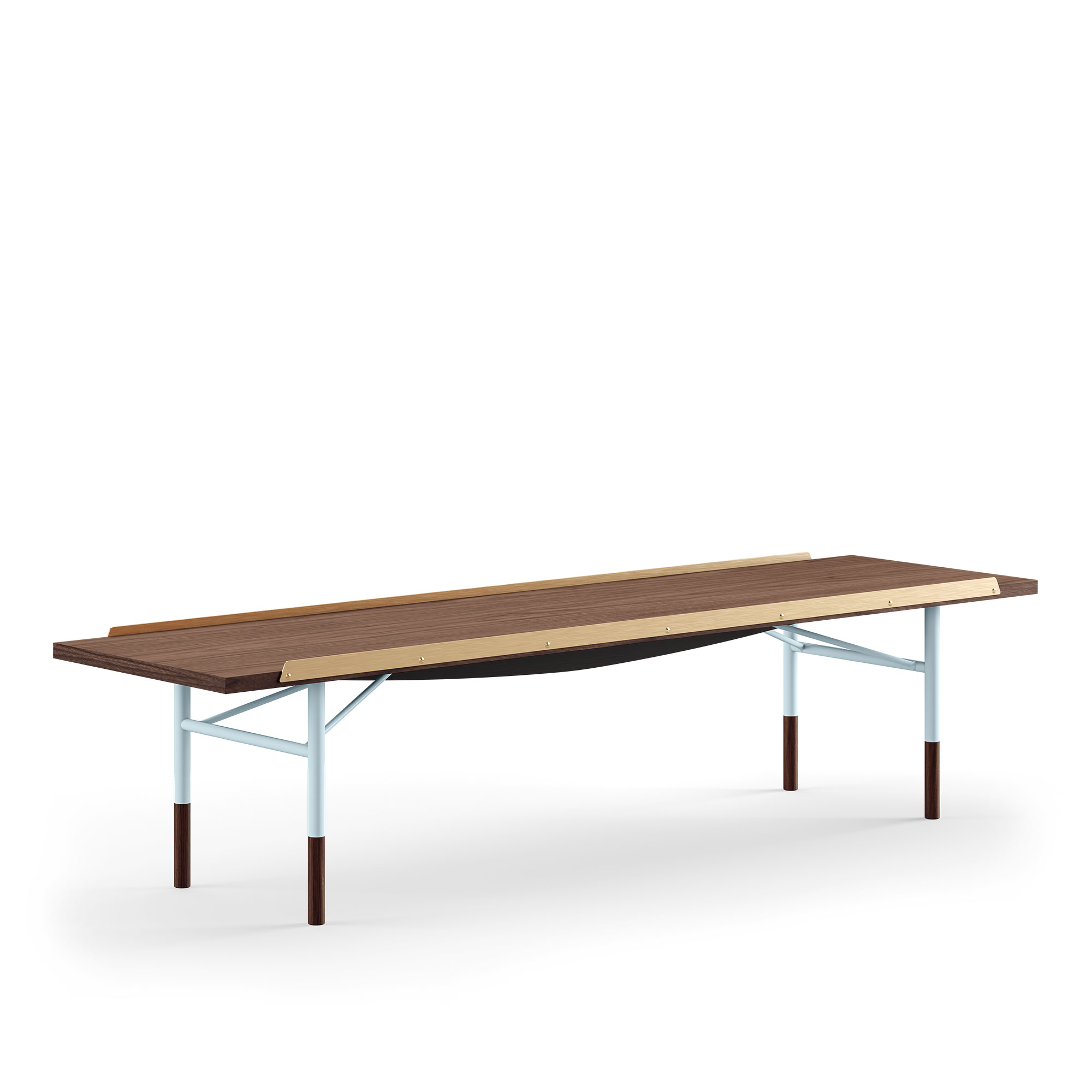 House of Finn Juhl - Table Bench Large, With Brass Edges, Walnut, Light Blue Steel - TV-bänkar - Finn Juhl - Träfärgad,Blå - Metall/Trä