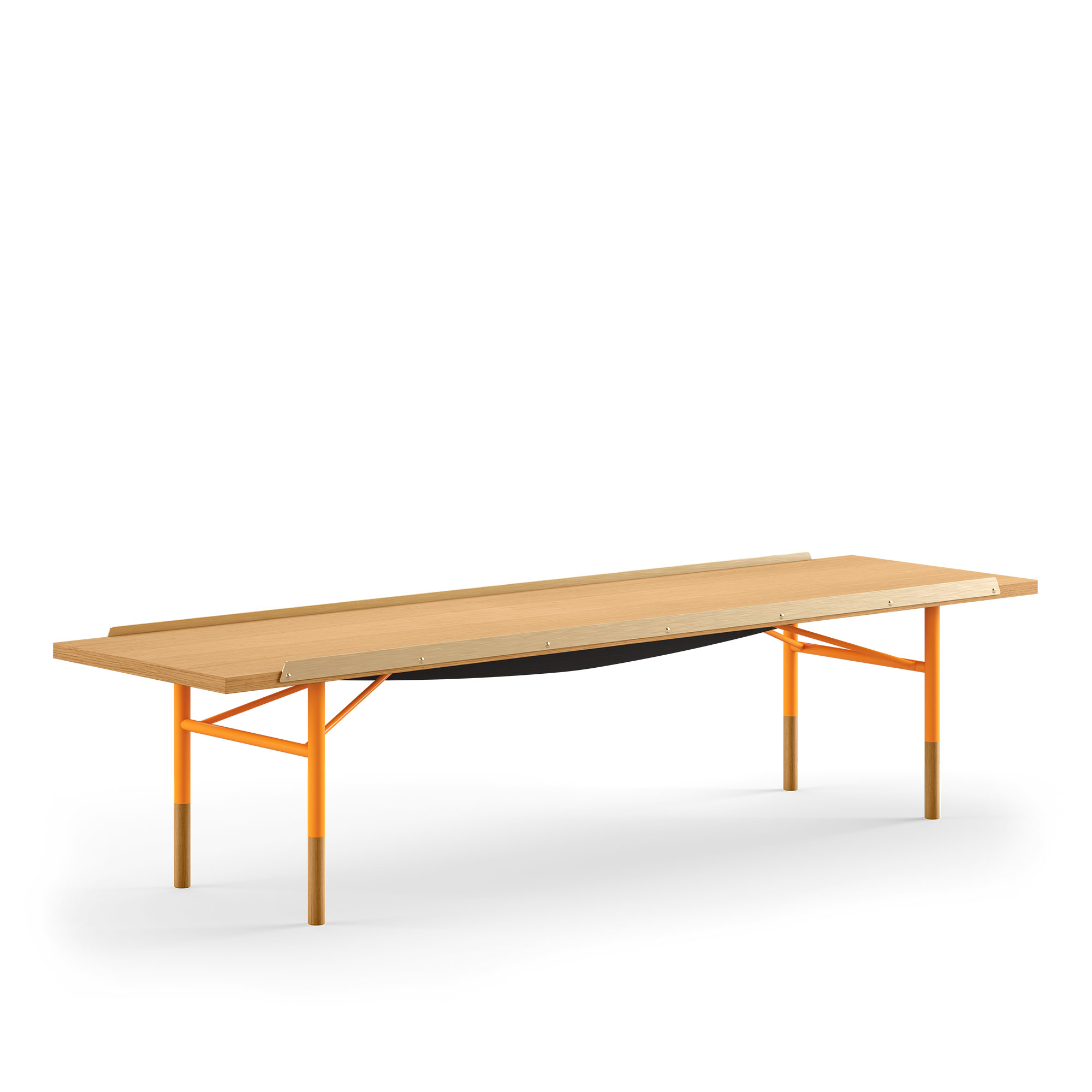 House of Finn Juhl - Table Bench Medium, With Brass Edges, Dark oiled oak, Orange Steel - TV-bänkar - Finn Juhl - Orange,Träfärgad - Metall/Trä