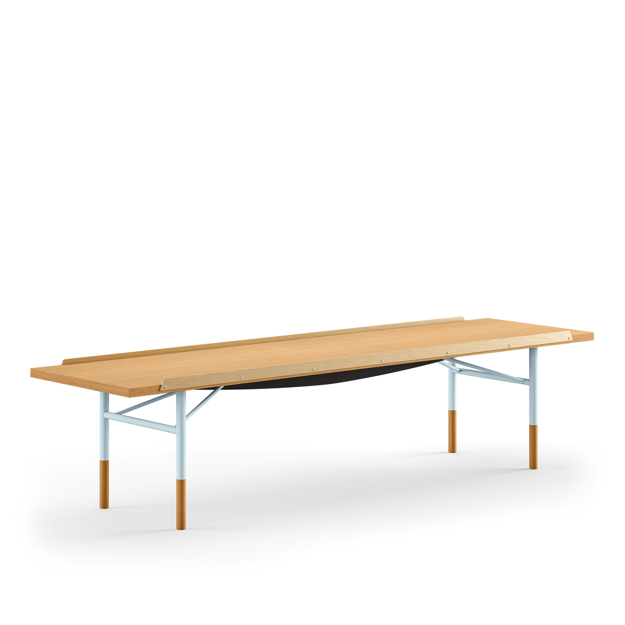House of Finn Juhl - Table Bench Small, With Brass Edges, Dark oiled oak, Light Blue Steel - TV-bänkar - Finn Juhl - Träfärgad,Blå - Metall/Trä