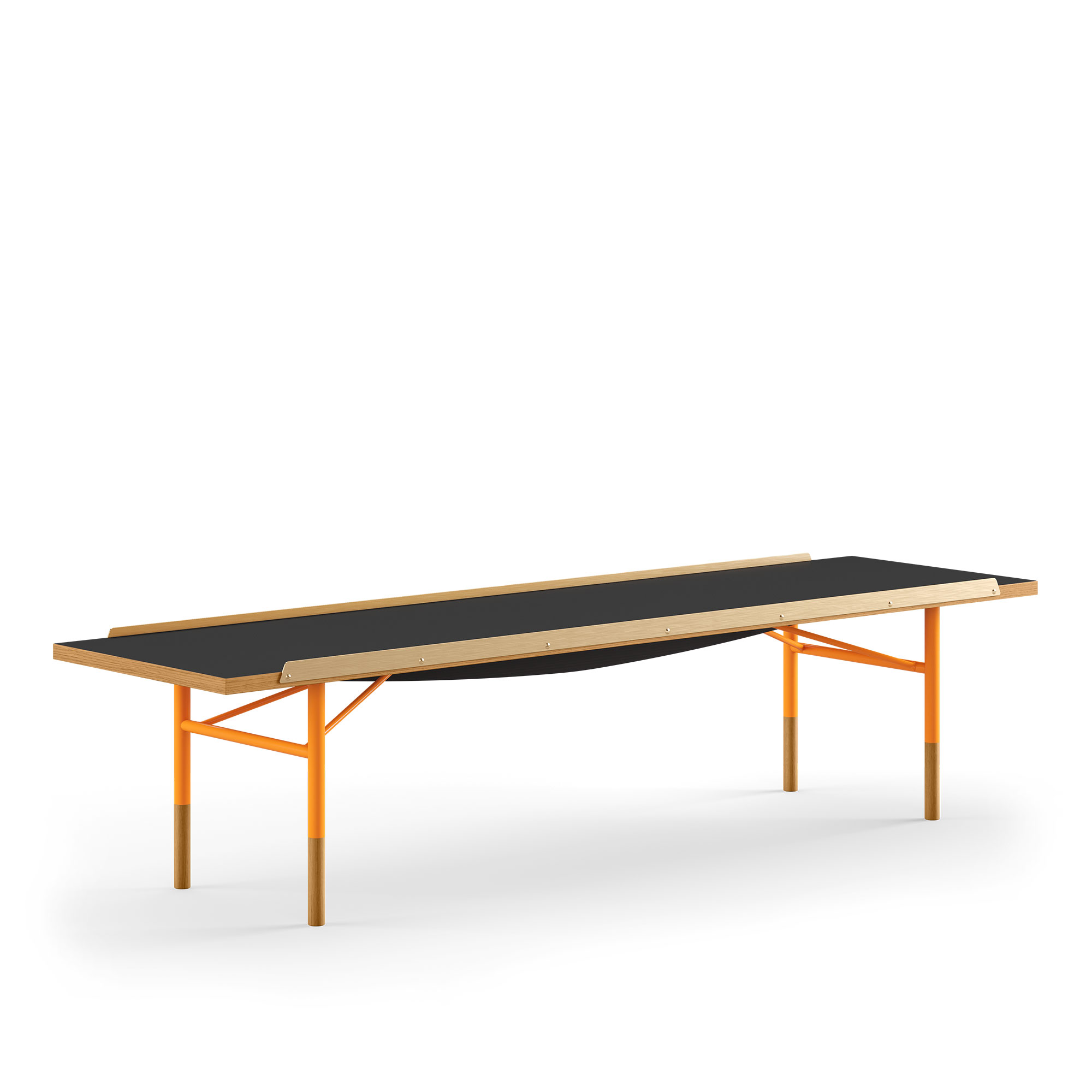 House of Finn Juhl - Table Bench Small, With Brass Edges, Dark oiled oak/black linoleum, Orange Steel - TV-bänkar - Finn Juhl - Orange,Träfärgad,Svart - Metall/Trä/Plast
