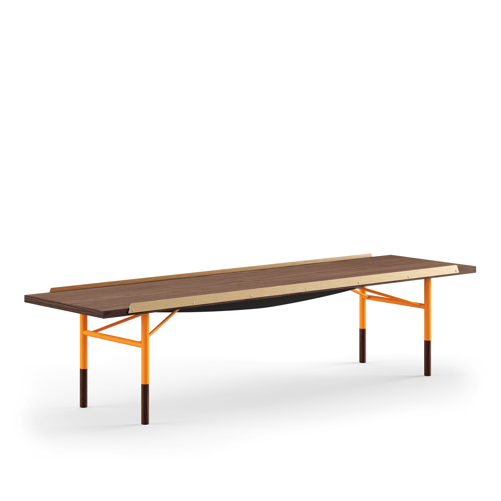 House of Finn Juhl - Table Bench Small, With Brass Edges, Walnut, Orange Steel - TV-bänkar - Finn Juhl - Orange,Träfärgad - Metall/Trä