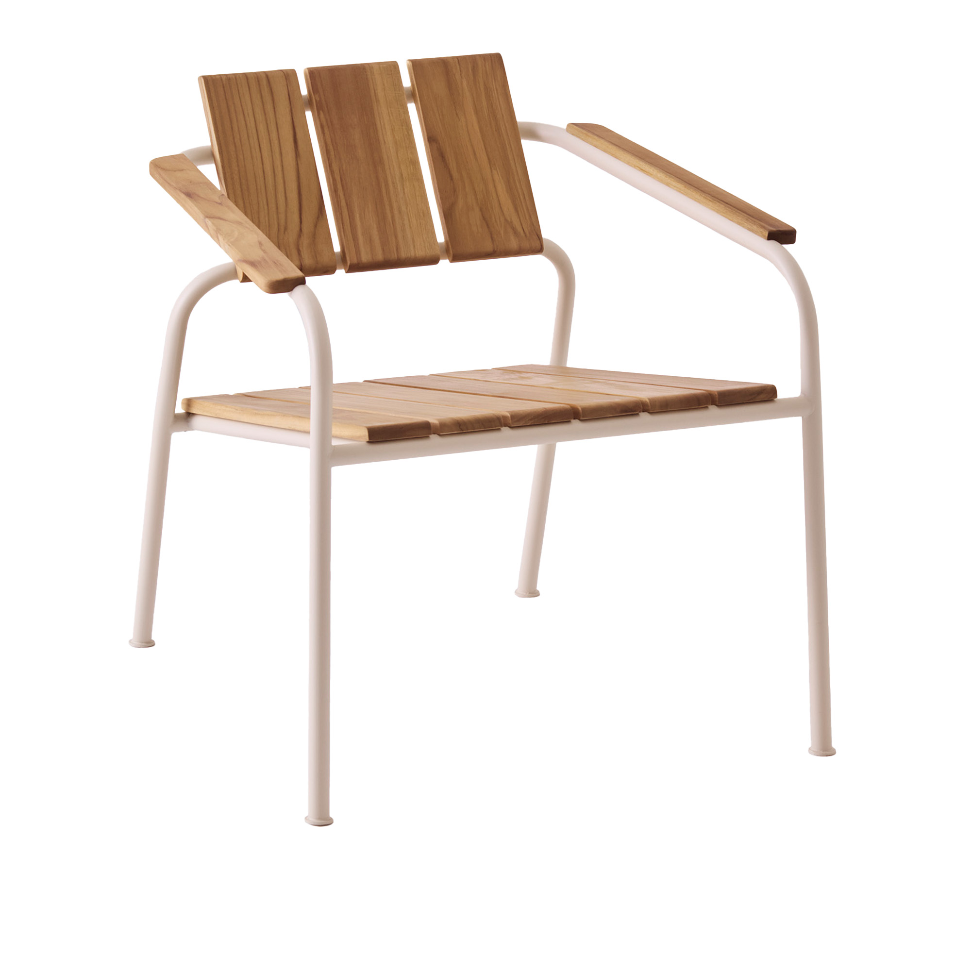 Utomhusfåtöljen är tillverkad av solid FSC-certifierad teak och pulverlackerat stål, för att tåla alla väderförhållanden och åldras vackert över tid. Fåtöljen är lätt att placera i många olika miljöer, från terrassen till trädgården, balkongen och stranden.