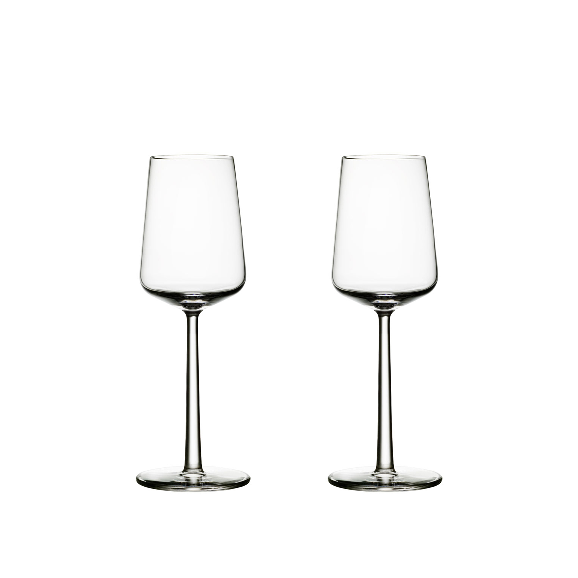 Essence Vitvinsglas 2-pack, formgivna av Alfredo Häberli för Iittala. Kommer i 2-pack. Med kollektionen Essence introducerade Iittala en ny idéorienterad design. Tanken bakom kollektionen är att så få glas som möjligt ska kunna användas till så många viner som möjligt. De välbalanserade glasen ger vinet rum och gör det än mer njutbart. Foten på glasen i serien Essence är lika stor oberoende av storleken på kupan vilket gör att dukningen blir mer harmonisk.