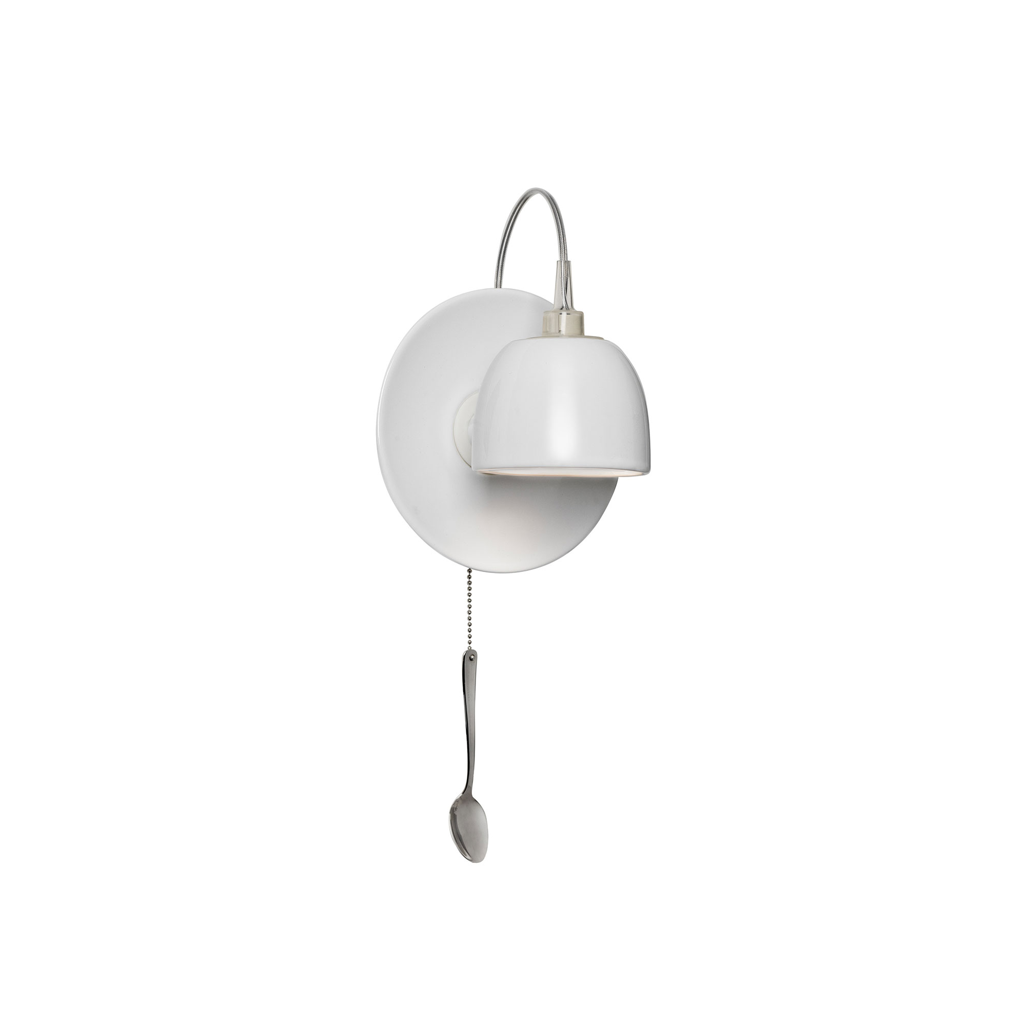 Light Au Lait utgör en unik väggmonterad belysningsarmatur, skapad 2004 av designern Fabien Dumas för det tyska företaget Ingo Maurer. Denna lampa är tillverkad av material som sten, silikon och rostfritt stål, och dess design påminner om en fastsatt tallrik på väggen med en kopp som dinglar ovanifrån. Dessutom är den utrustad med en dragströmbrytare som är formad som en sked, vilket speglas i produktnamnet. Tack vare skålens förmåga att rotera 180 grader kan användaren enkelt justera ljusets riktning. Vid första ögonkastet framstår Light Au Lait som en stilig väggbelysning, men vid närmare inspektion avslöjar skeden en humoristisk touch som gör armaturen till en samtalsväckande och distinkt dekorativ detalj i hemmet.