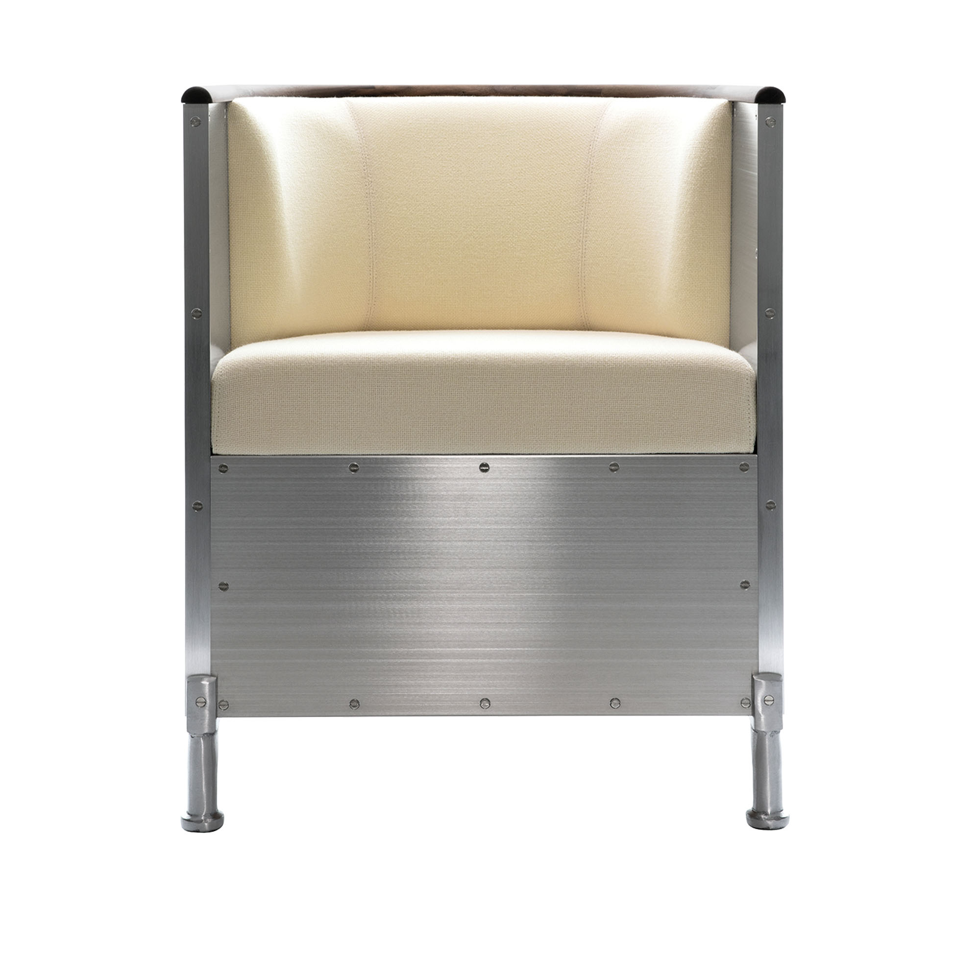 Källemo - Aluminium fåtölj, Karm i massiv valnöt, Polerad aluminium - Fåtöljer - Mats Theselius - Silver - Metall/Trä/Textilmaterial