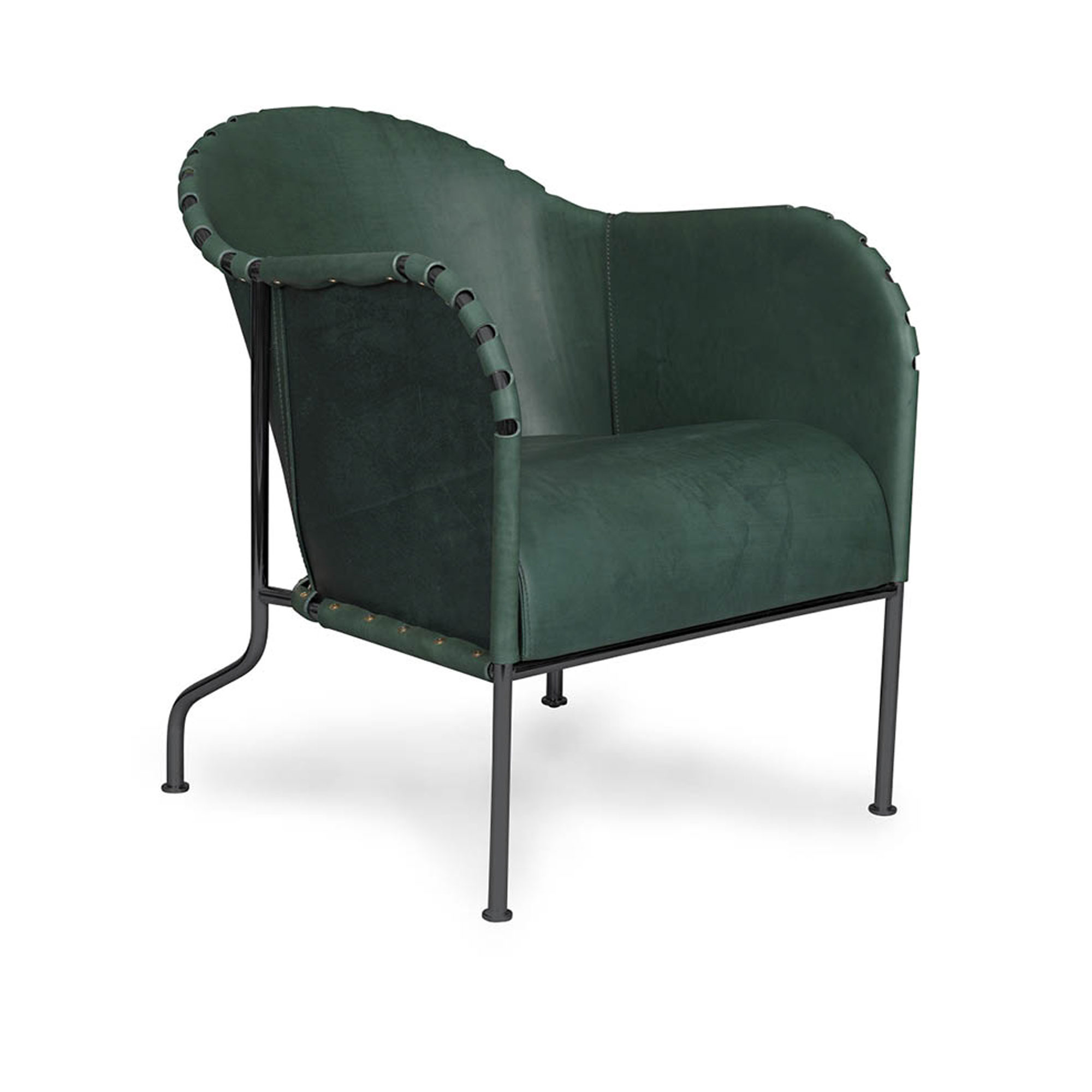 Källemo - Bruno Fåtölj, Tärnsjö Kärnläder Grön, Svartoxiderat stålstativ - Fåtöljer - Mats Theselius - Grön - Läder/Metall