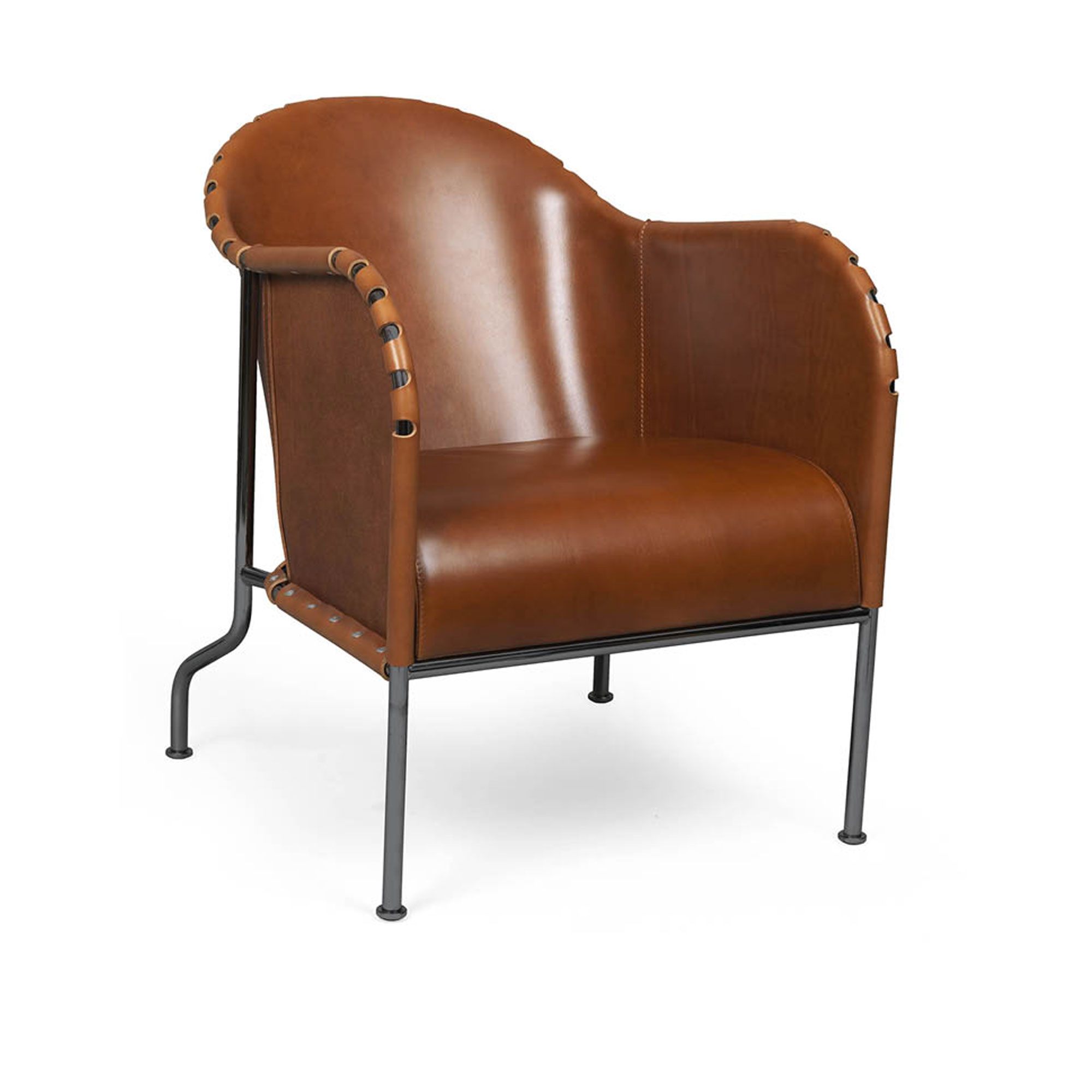 Fåtöljen Bruno formgavs av Mats Theselius 1997 och återfinns bl.a på flertalet svenska ambassader världen över. Bruno har ett stativ av kromat stål, oxiderat stål, koppar eller mässing och är klädd med nitat läder från Tärnsjö Garveri. Välj mellan ett flertal olika färger på lädret.