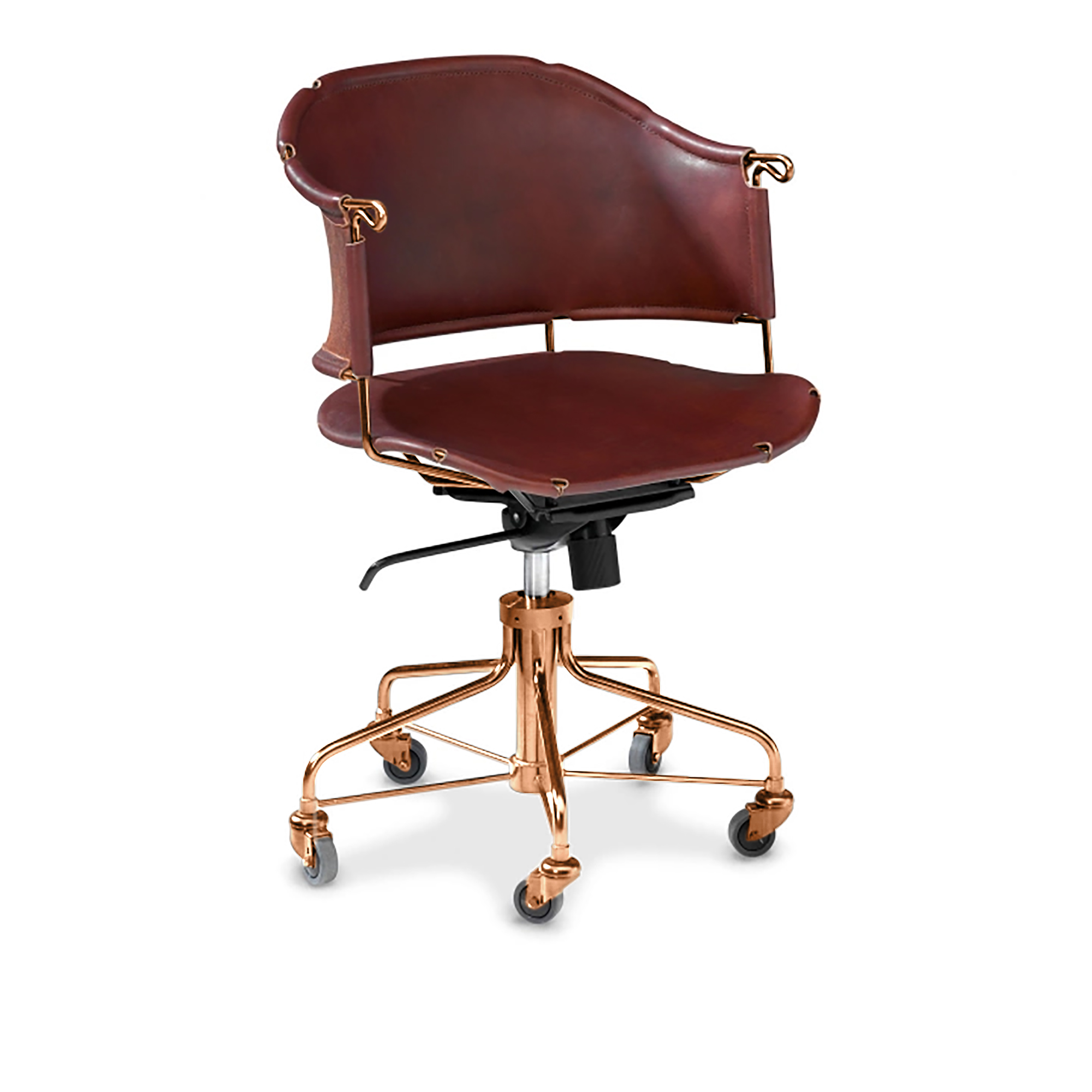 Källemo - Sheriff Arbetsstol, Tärnsjö Kärnläder Brun, Stativ i kopparbehandlat krom - Kontorsstolar - Mats Theselius - Brun