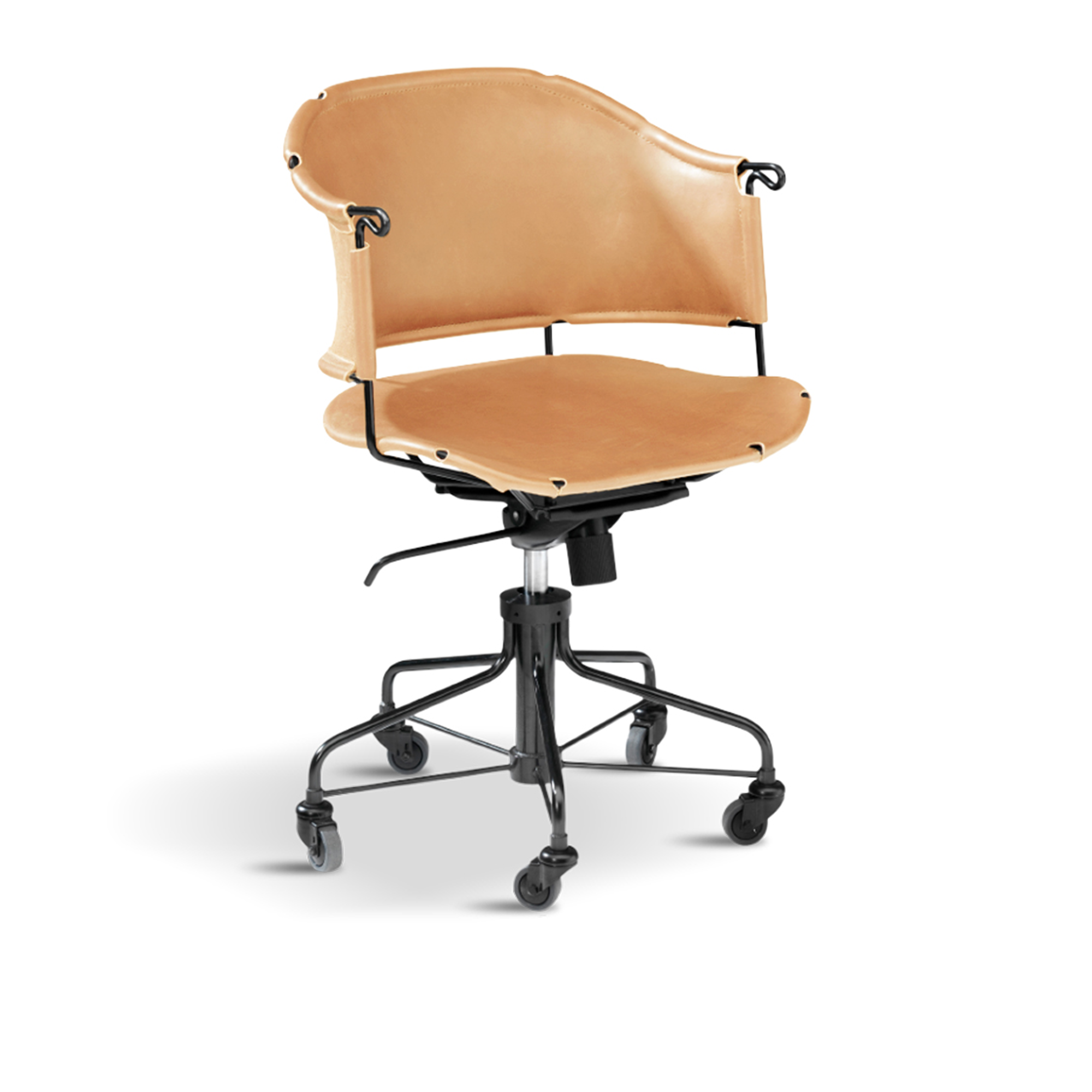Källemo - Sheriff Arbetsstol, Tärnsjö Kärnläder Natur, Stativ i svartoxiderat krom - Kontorsstolar - Mats Theselius - Beige