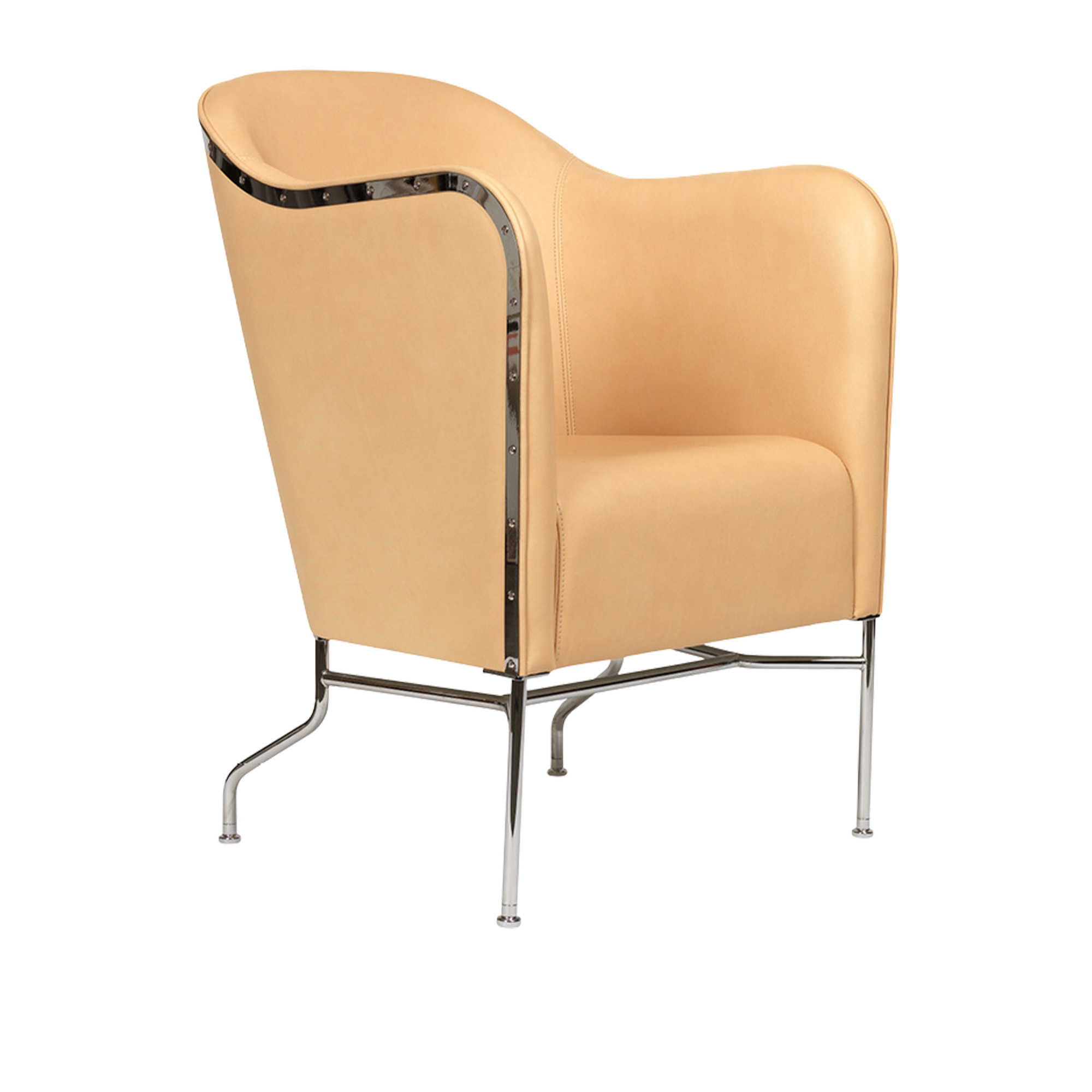 Källemo - Star Fåtölj, Tärnsjö Plymåläder 8800, Stativ och stålkant i krom - Fåtöljer - Mats Theselius - Beige - Läder/Metall/Skum