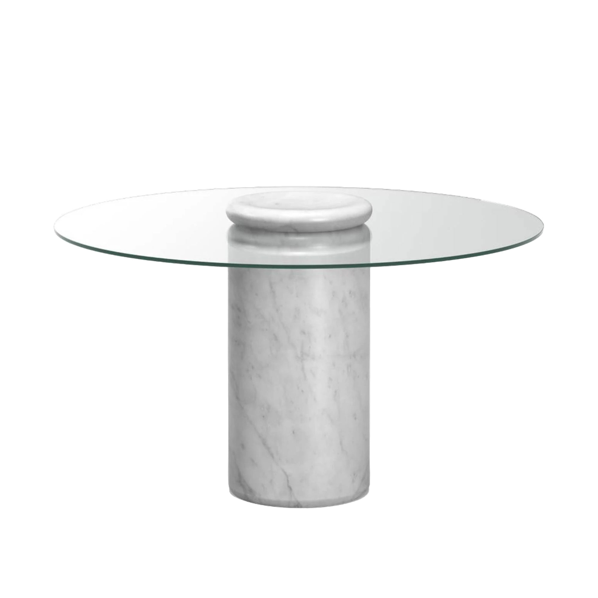 Karakter - Castore dining table Ø130, Bianco Carrara / clear glass - Matbord - Angelo Mangiarotti - Vit - Glas/Naturmaterial/Textilmaterial/Sten