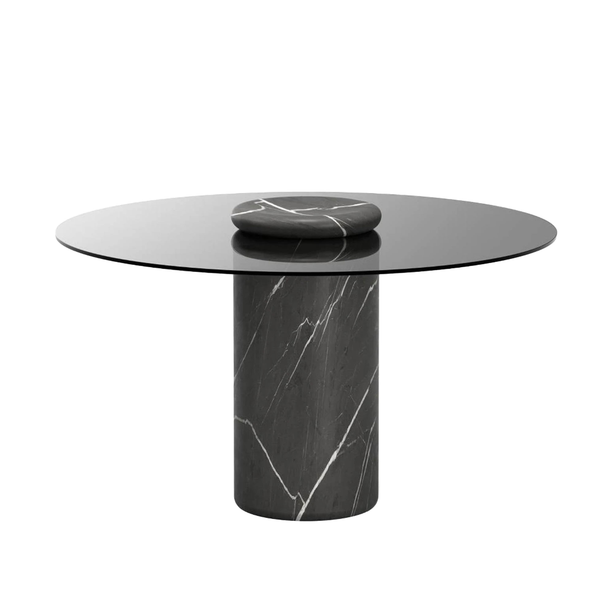 Karakter - Castore dining table Ø130, Pietra Grey / smoked glass - Matbord - Angelo Mangiarotti - Grå - Glas/Naturmaterial/Textilmaterial/Sten