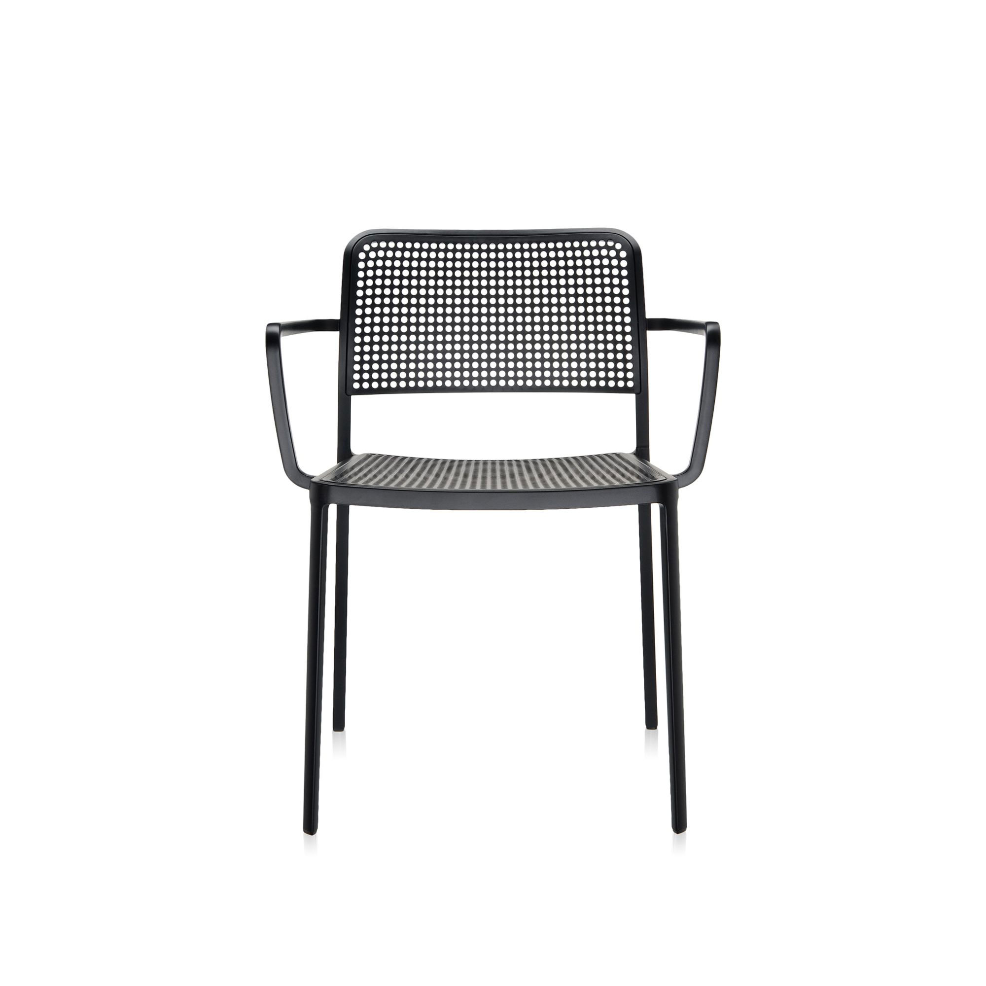 Audrey Fåtöljen är en mångsidig stol med armstöd designad av Piero Lissoni för företaget Kartell under 2012. Denna stol är anpassningsbar för både inom- och utomhusbruk och dess robusta och tåliga konstruktion gör den lämplig för både privata hem och offentliga utrymmen. Dessutom är Audrey konstruerad för att kunna staplas, med en kapacitet på upp till sju stolar. Stolens ram är gjord av aluminium och erbjuds i lackerade utföranden i aluminiumnyans, vitt eller svart. Sitsen och ryggstödet är gjorda av perforerad plast, som finns tillgänglig i ett brett spektrum av färger. Det finns möjlighet att välja mellan omkring 50 olika färgkombinationer för Audrey. Denna version av Audrey inkluderar armstöd, men den finns även att få utan dessa, samt med en stoppad och klädd variant av sits och ryggstöd.