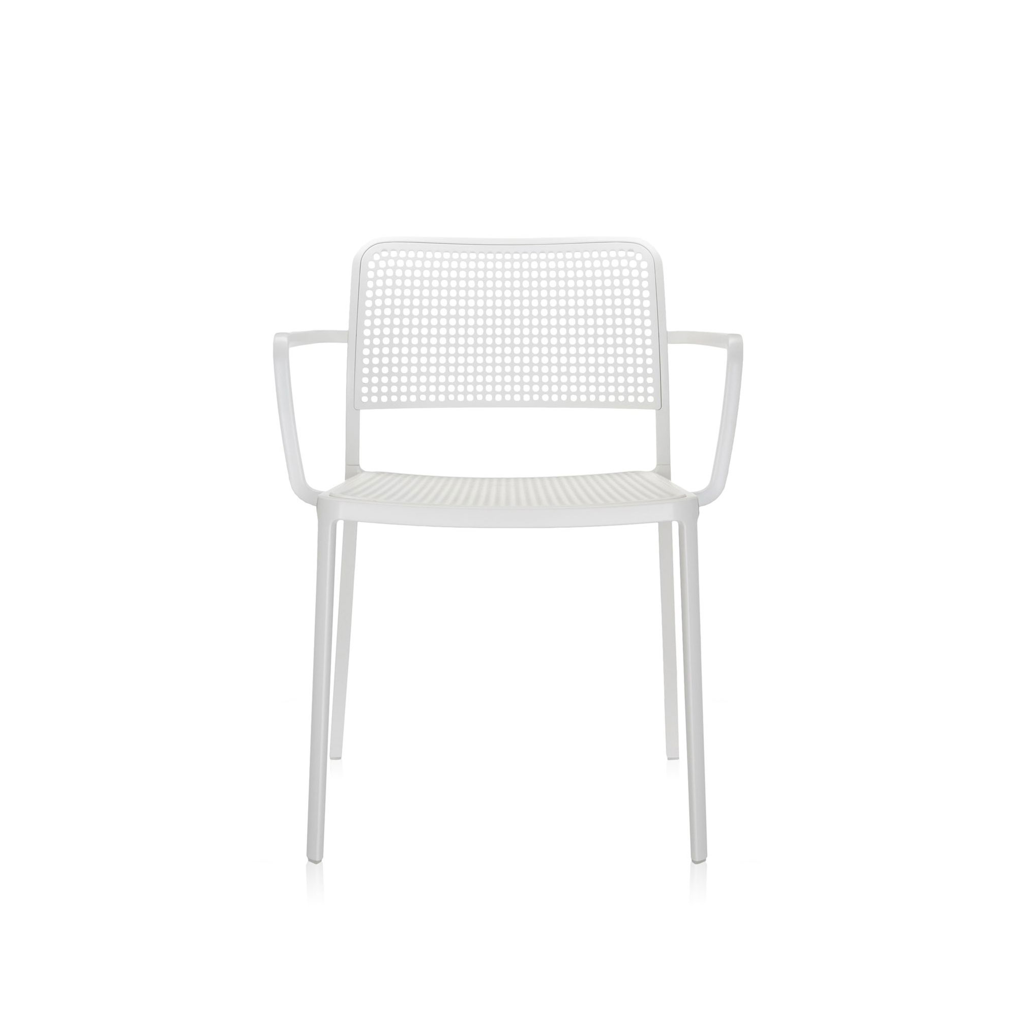 Audrey Fåtöljen är en mångsidig stol med armstöd designad av Piero Lissoni för företaget Kartell under 2012. Denna stol är anpassningsbar för både inom- och utomhusbruk och dess robusta och tåliga konstruktion gör den lämplig för både privata hem och offentliga utrymmen. Dessutom är Audrey konstruerad för att kunna staplas, med en kapacitet på upp till sju stolar. Stolens ram är gjord av aluminium och erbjuds i lackerade utföranden i aluminiumnyans, vitt eller svart. Sitsen och ryggstödet är gjorda av perforerad plast, som finns tillgänglig i ett brett spektrum av färger. Det finns möjlighet att välja mellan omkring 50 olika färgkombinationer för Audrey. Denna version av Audrey inkluderar armstöd, men den finns även att få utan dessa, samt med en stoppad och klädd variant av sits och ryggstöd.