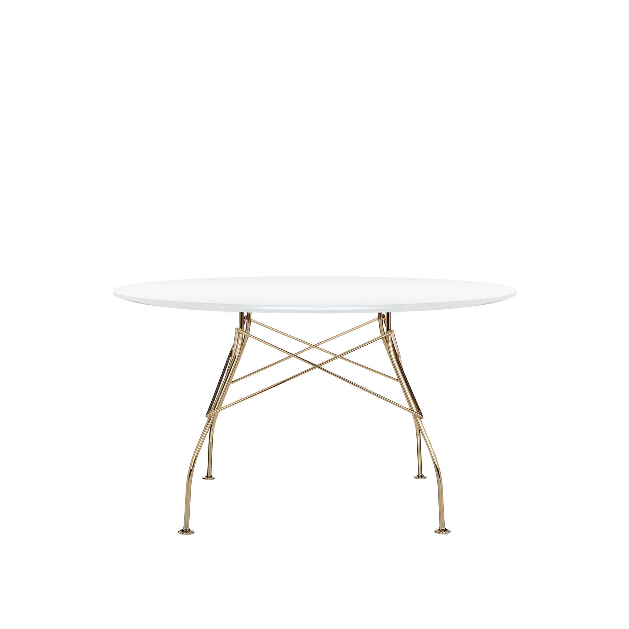 Kartell - Glossy Round Table 4568 Ø130, Gold, White Polyester - Matbord - Antonio Citterio - Vit - Naturmaterial/Metall