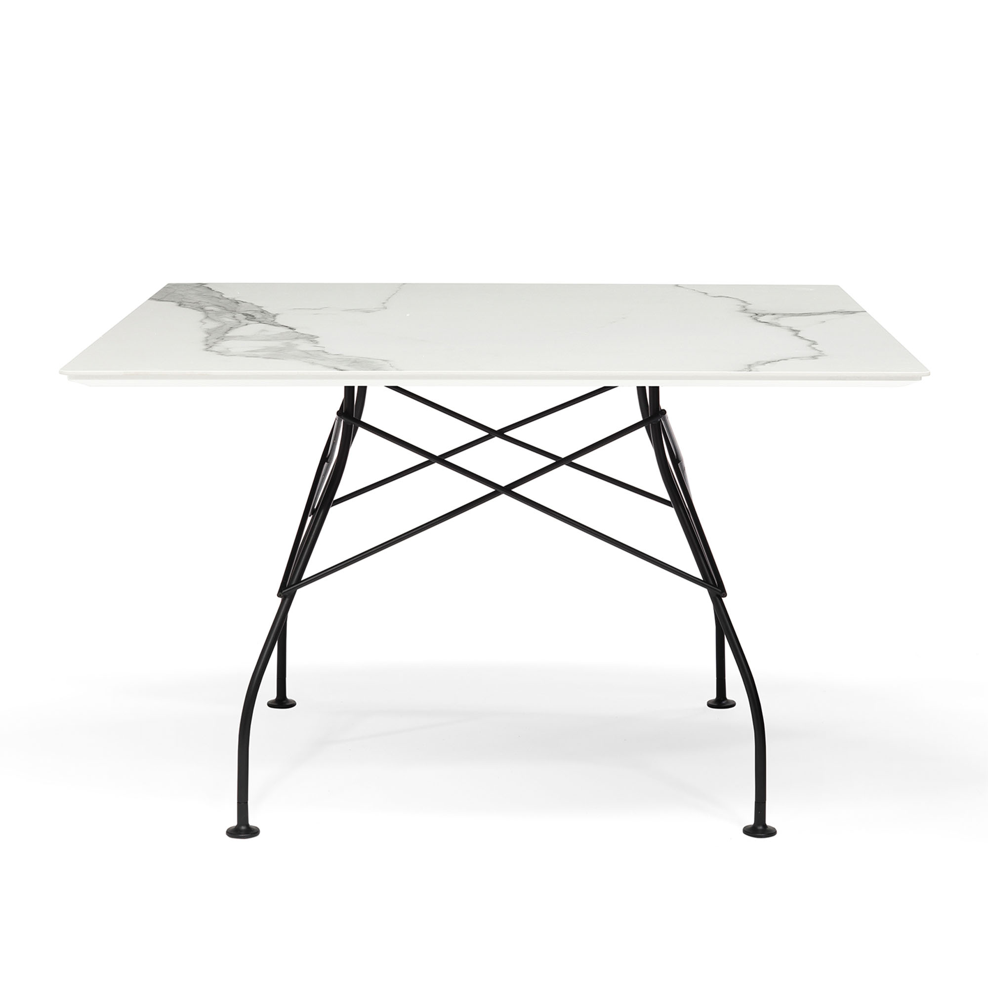 Kartell - Glossy Square Table 118x118 Marble Top, Black Painted Steel Frame White - Matbord - Antonio Citterio - Vit - Metall/Sten