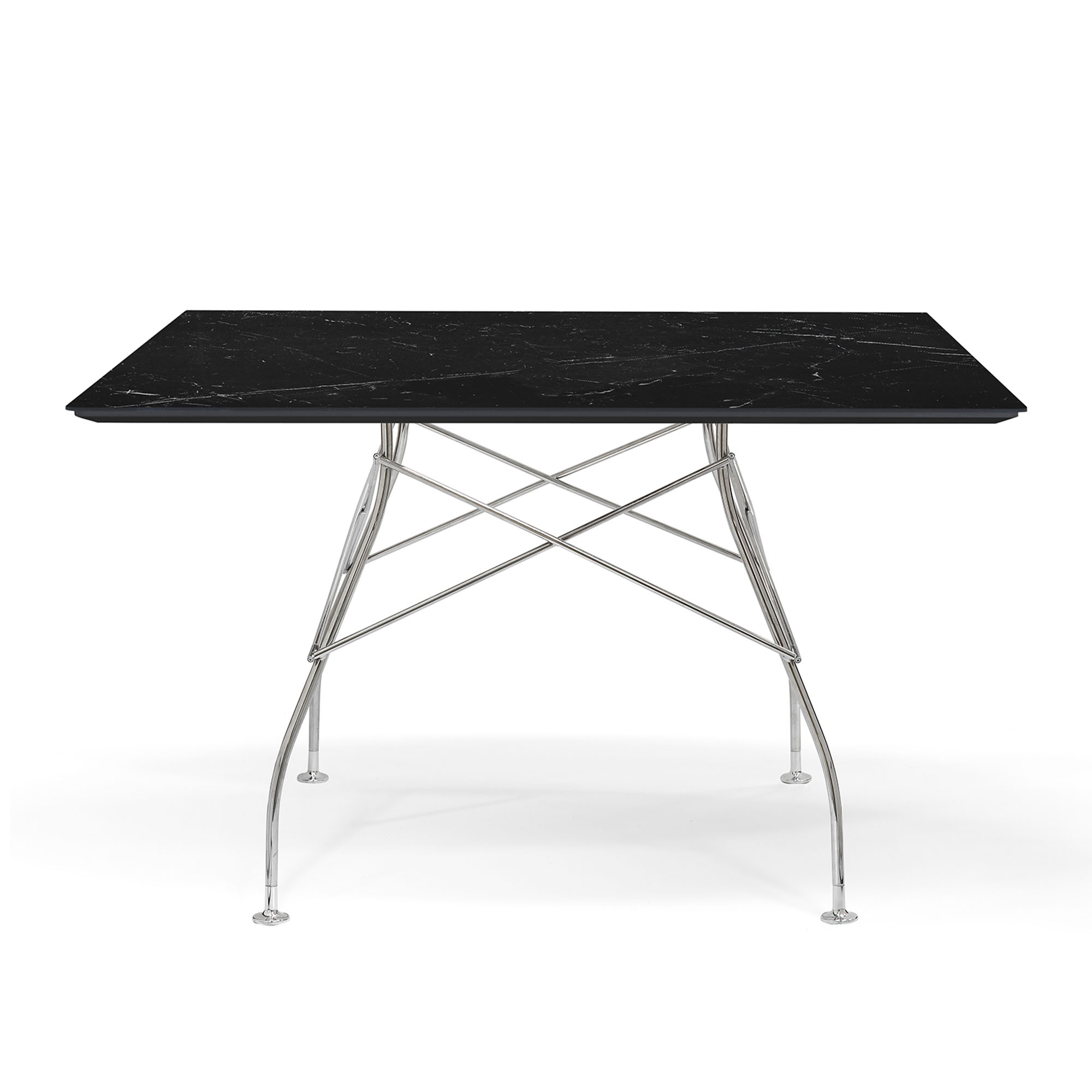 Kartell - Glossy Square Table 118x118 Marble Top, Chrome-plated Steel Frame Black Marquina - Matbord - Antonio Citterio - Svart - Metall/Sten