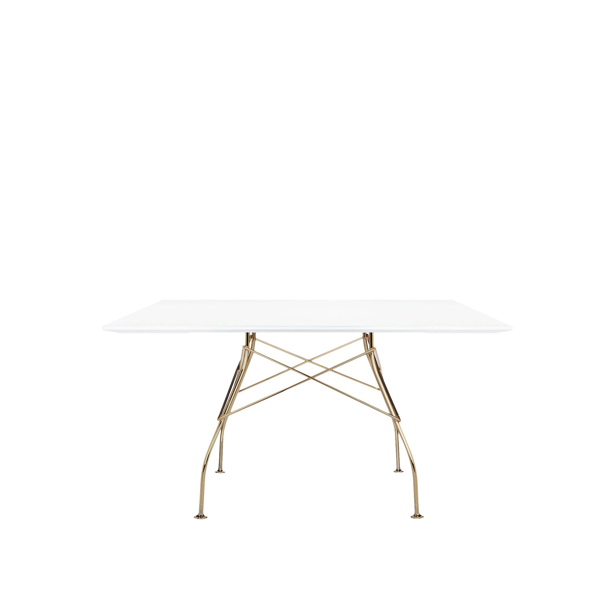Kartell - Glossy Square Table 4567 130x130, Gold, White Polyester - Matbord - Antonio Citterio - Vit - Naturmaterial/Metall