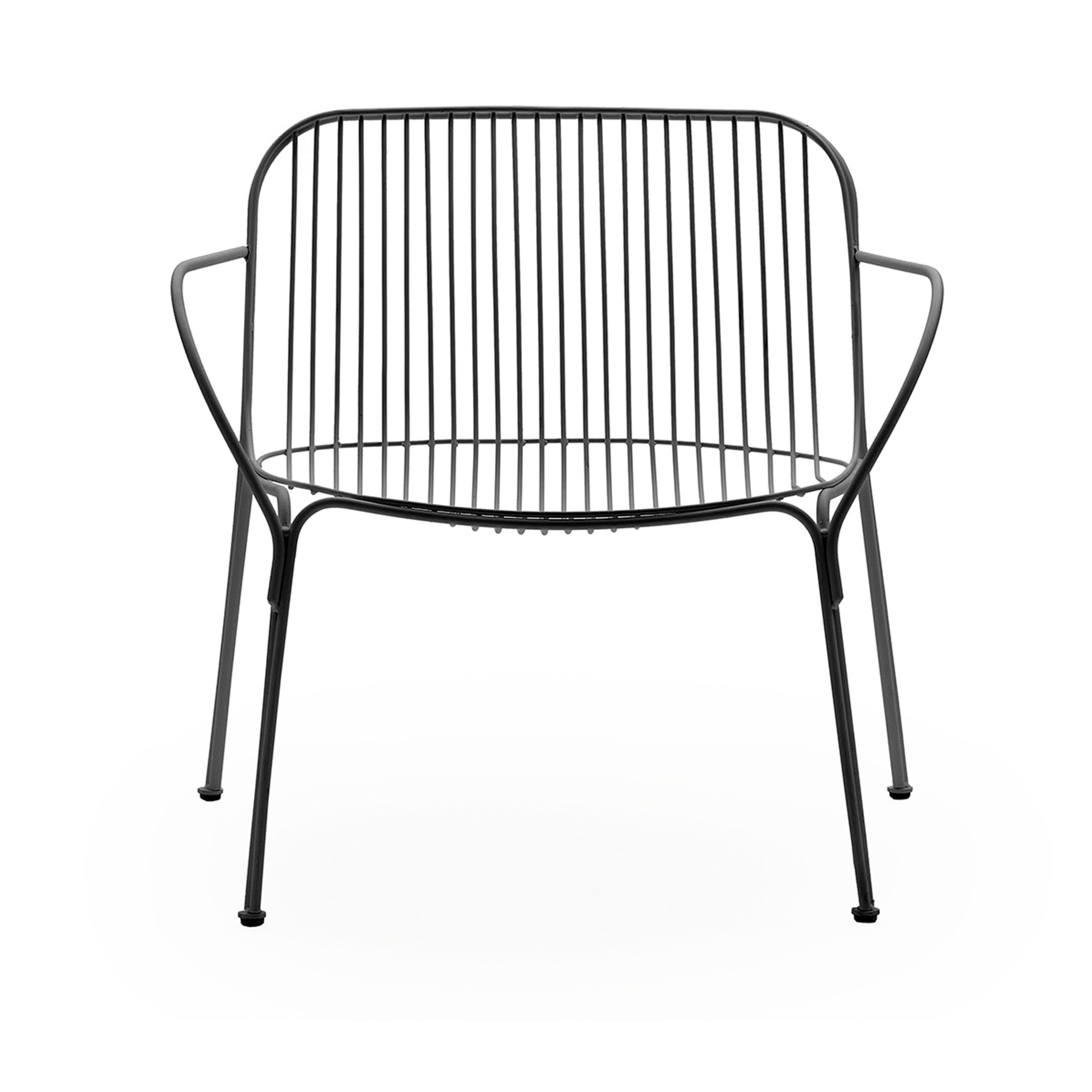 HIRAY Armchair, designad av Ludovica + Roberto Palomba för Kartell, har en svetsad metalltrådsstruktur. Denna process skapar en essentiell, funktionell och känslomässigt rik produkt. Metalltrådarna bildar lätta och väldefinierade delar av fåtöljen samt andra delar i kollektionen, inklusive en stol, stol med armstöd, bistrobord, divan och sidobord. HIRAY-kollektionen finns i flera olika färger, inklusive vitt, Bordeaux, svart och grönt, vilket säkerställer att den passar olika inredningsstilar och miljöer. Varje del i kollektionen kombinerar modern design med hög funktionalitet, vilket gör den idealisk för både privata och offentliga utrymmen.