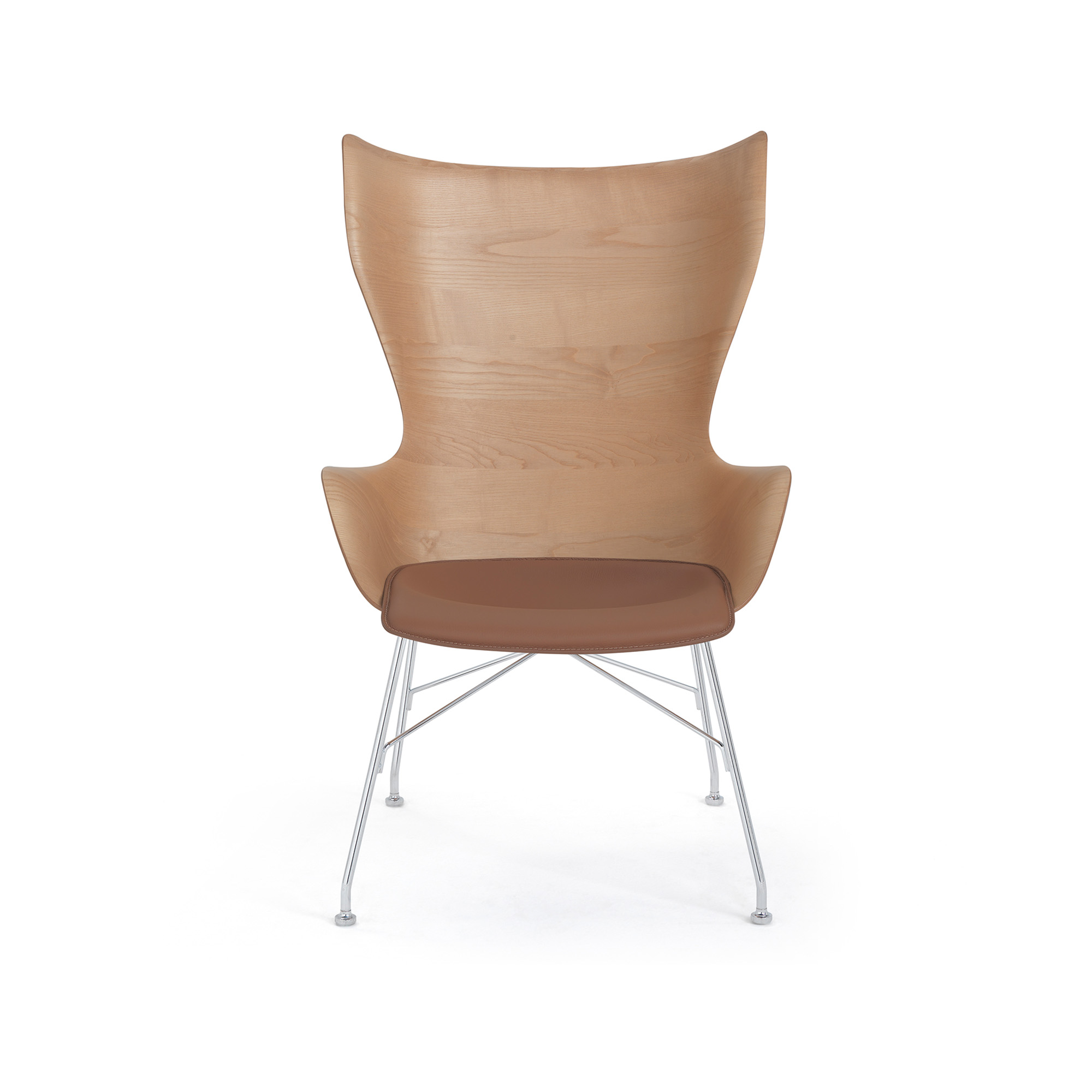 Kartell - K/Wood Leather Seat 4917, Light Wood, Chrome - Fåtöljer - Philippe Starck - Träfärgad - Läder/Metall/Trä