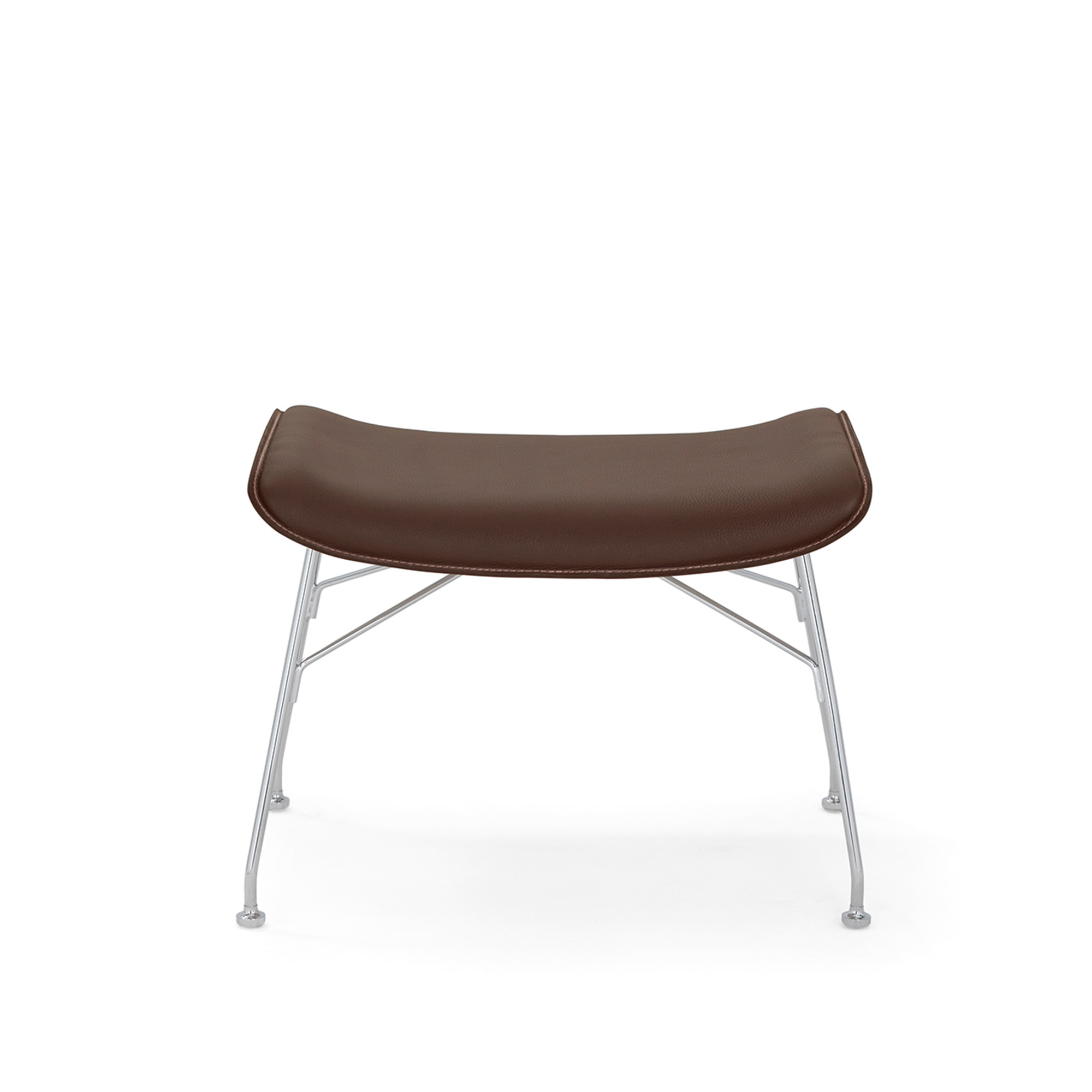 Kartell - S/Wood Leather 4920, Dark Wood, Chrome - Fotpallar - Philippe Starck - Träfärgad - Läder/Metall/Trä