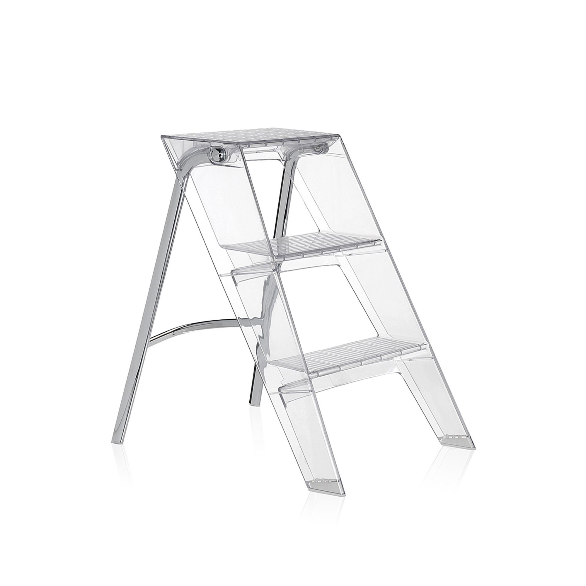 Upper Stepladder från Kartell är en trappstege formgivren av Alberto Meda och Paolo Rizzatto. Denna multifunktionella trappstege fungerar inte bara som stege utan kan även användas som en extra sittplats. Den unika designen, med en ram i stål och trappsteg i transparent termoplast, gör den till en stilfull inredningsdetalj i hemmet. Termoplasten är känd för sin hållbarhet, vilket gör att Upper Stepladder kommer att hålla i många år framöver.