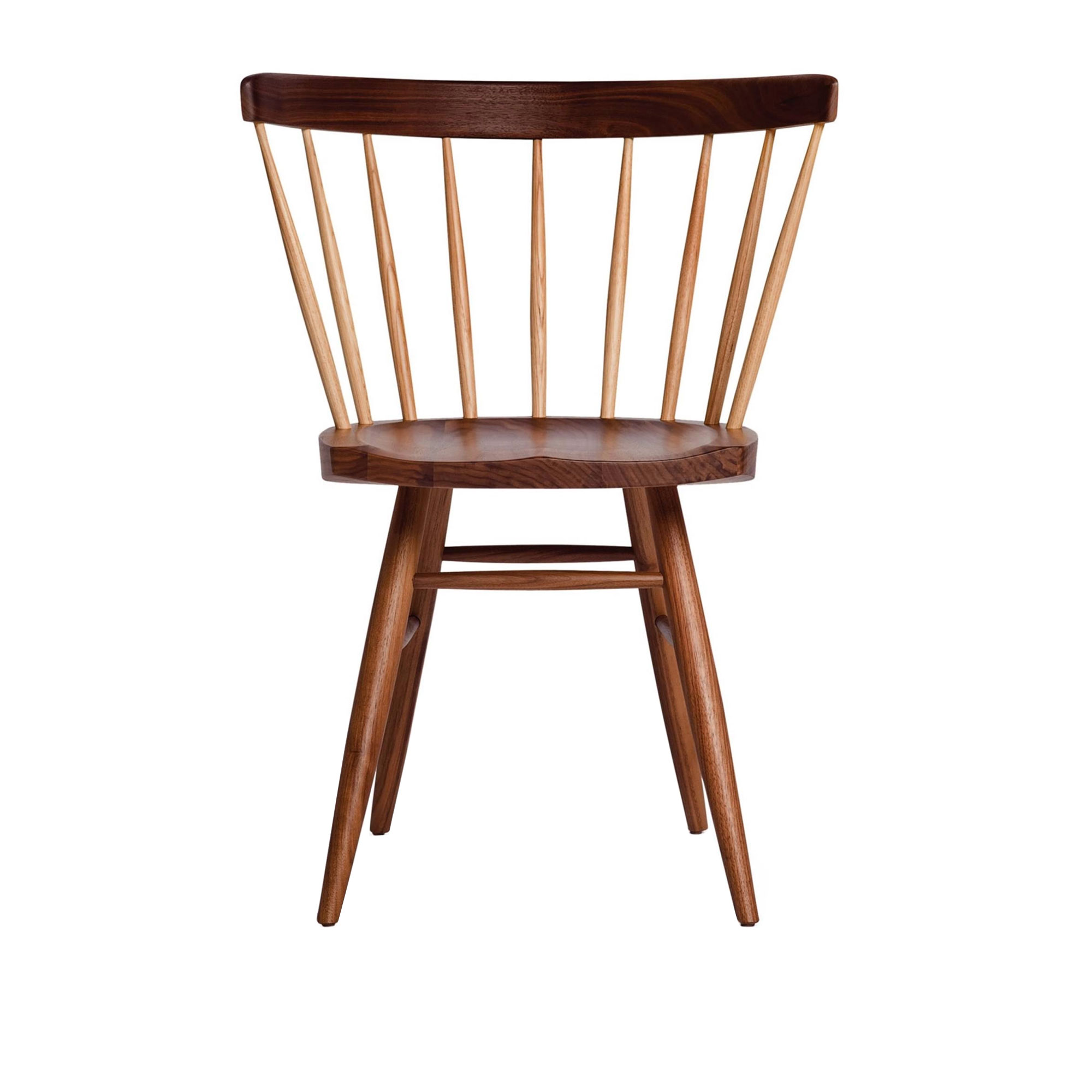 George Nakashima formgav Nakashima Straight Chair år 1946. Den här stolen representerar en modern tolkning av den klassiska Windsor-stolen. Nakashima visar här sin förmåga att kombinera traditionella hantverkstekniker med enkel och modern design. Nakashima Straight Chair är tillverkad av massivt trä, med amerikansk valnöt och detaljer i hickory. Ytan är behandlad med ett klart, lågglansigt lack som framhäver träets naturliga skönhet. Varje stol är unik och bär på sin egen karaktär.