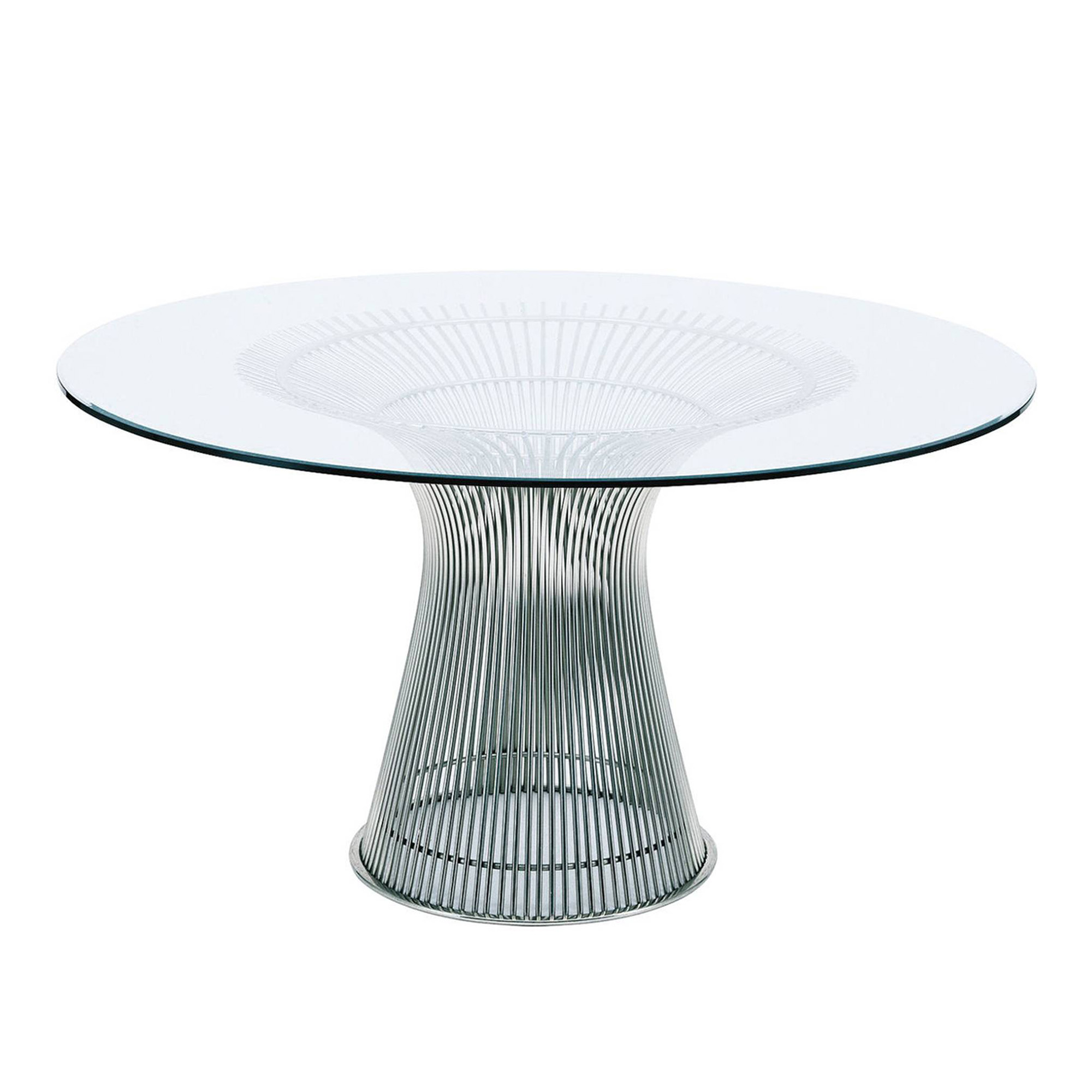 Knoll - Platner Dining Table, underrede i Polerad nickel, skiva i Klarglas - Matbord - Warren Platner - Transparent - Glas/Metall