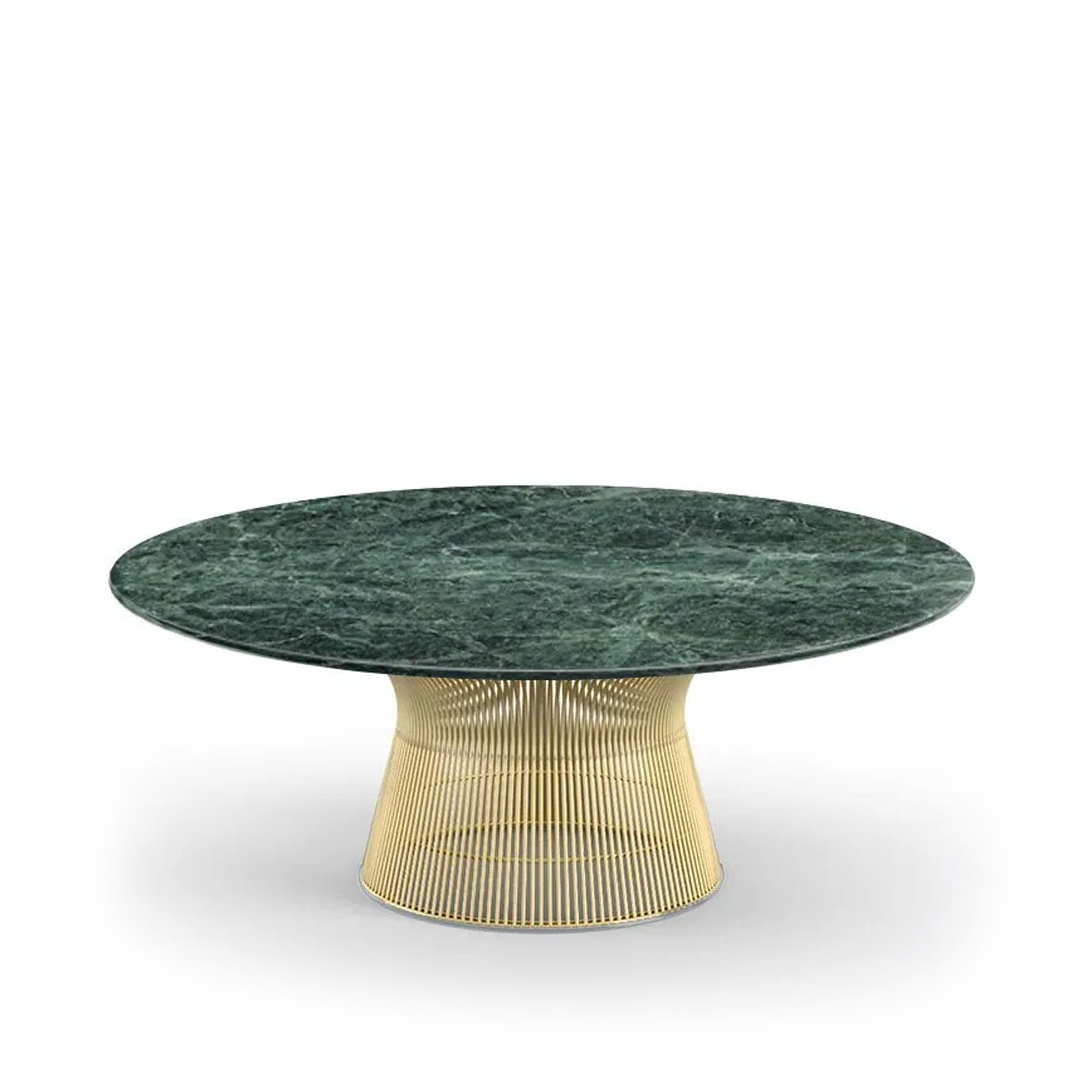 Knoll - Platner soffbord 18k guld, Ø 107 cm, skiva i grön Apli marmor - Soffbord - Warren Platner - Guld - Metall/Sten