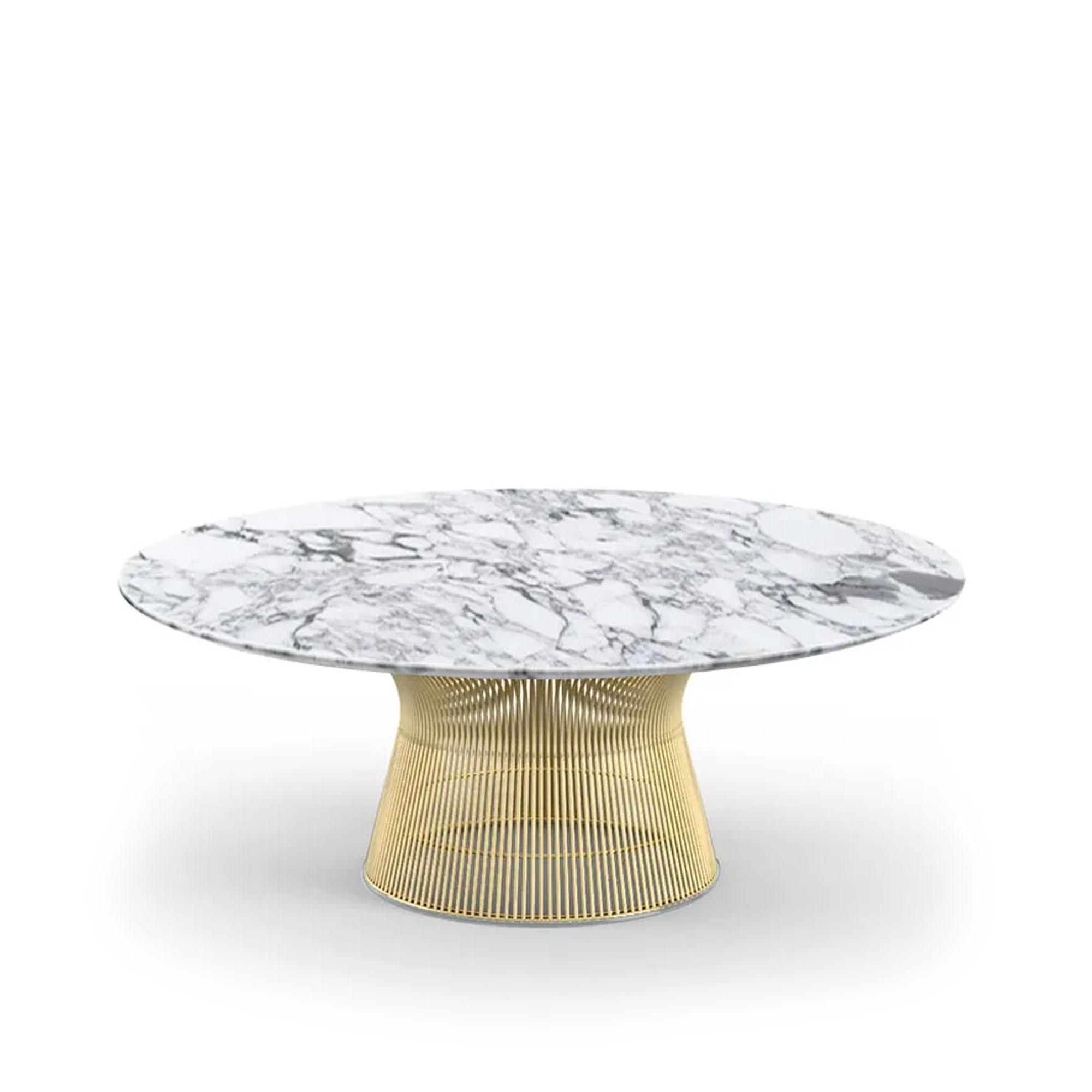Knoll - Platner soffbord 18k guld, Ø 107 cm, skiva i vit Arabescato marmor - Soffbord - Warren Platner - Guld - Metall/Sten