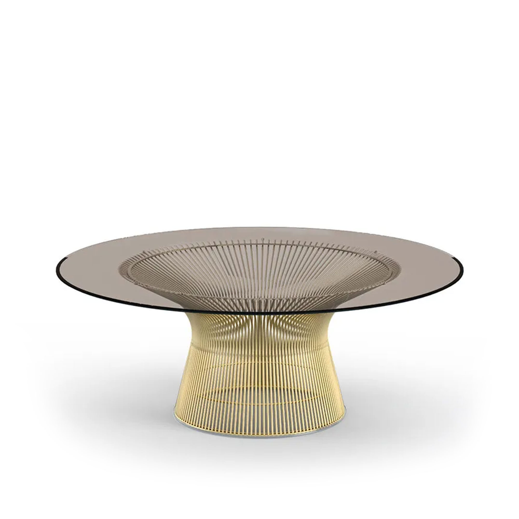 Knoll - Platner soffbord 18k guld, Ø 91,5 cm, skiva i Bronsfärgat glas - Soffbord - Warren Platner - Guld - Glas/Metall