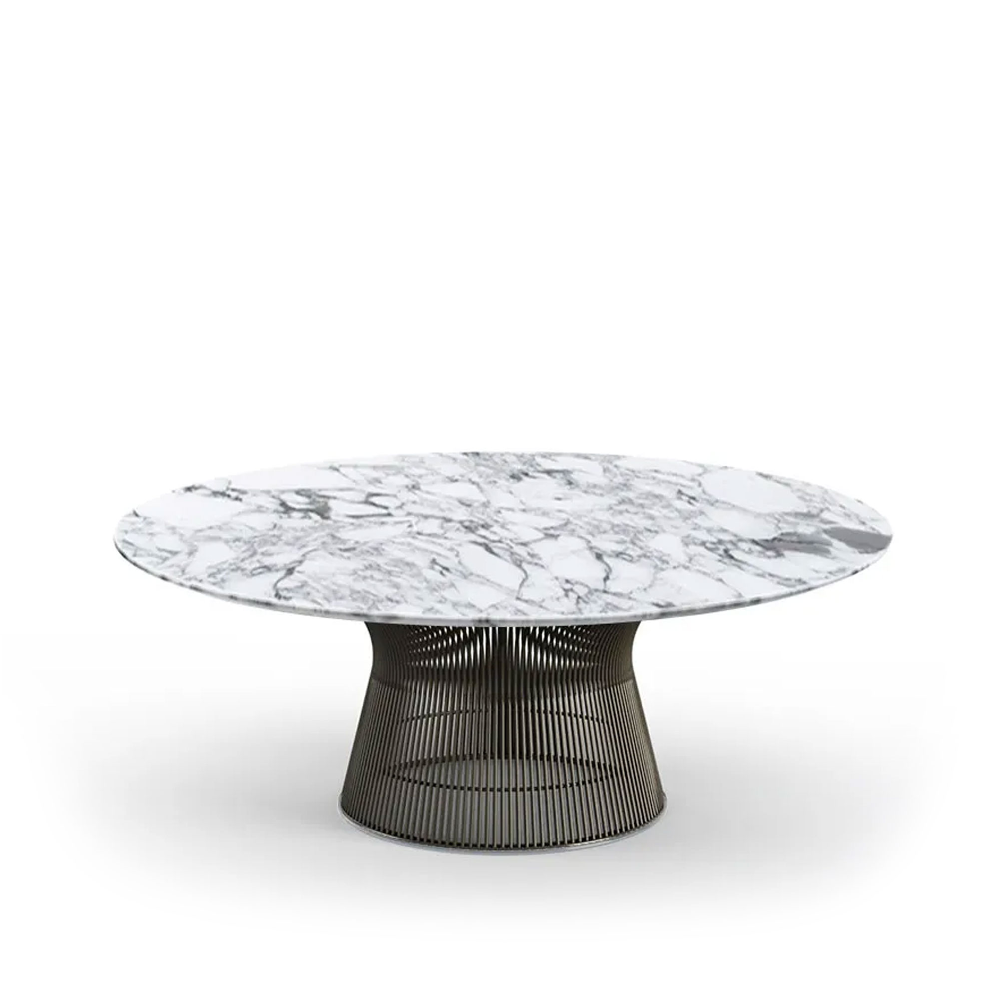 Knoll - Platner soffbord underrede i Brons metallic, Ø 107 cm, skiva i vit Arabescato marmor - Soffbord - Warren Platner