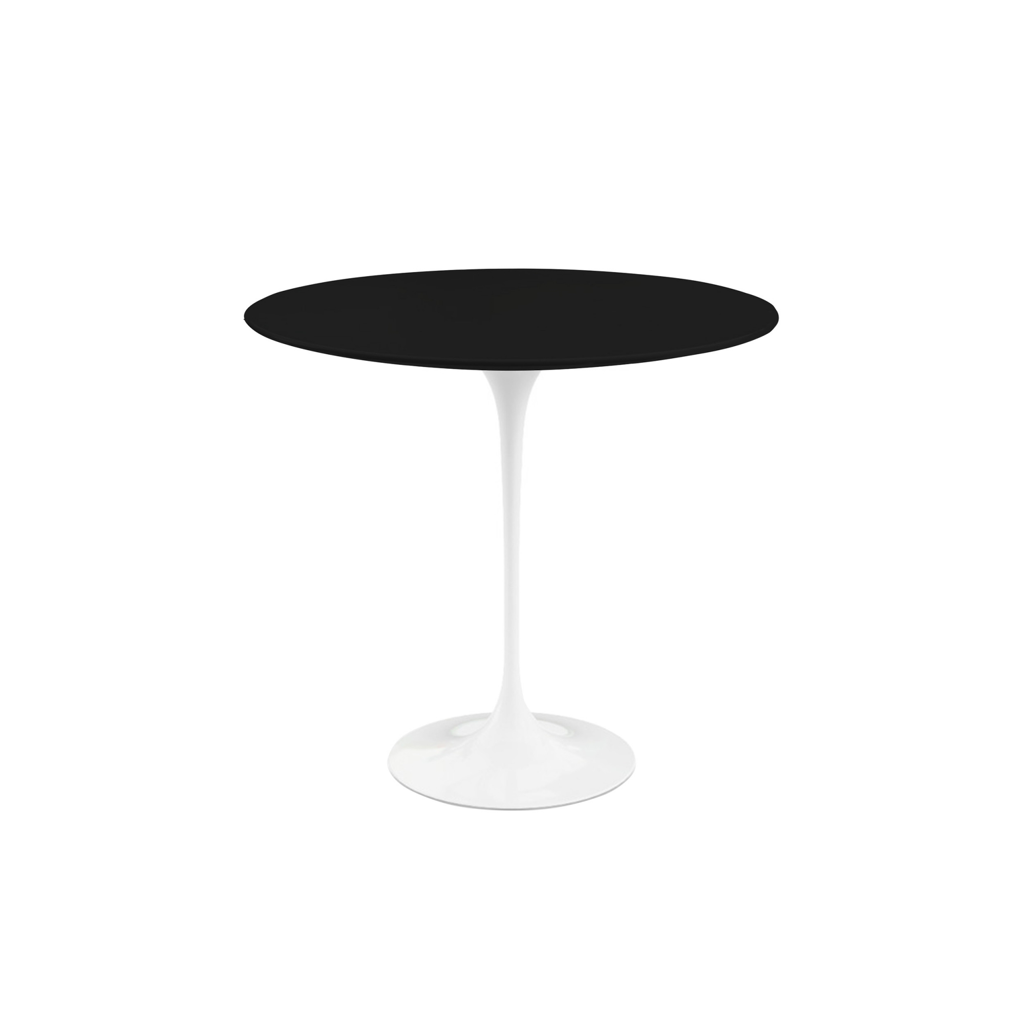 The Saarinen Collection är en serie bord designade av Eero Saarinen för Knoll år 1957. Kollektionen inkluderar Round Table och Oval Table, även kända som Tulip Table, i olika utföranden som passar som matbord, sidobord och soffbord. Dessa bord utmärks av en stilfull pelarfot gjord av formgjutet aluminium, kombinerat med antingen en rund eller oval bordsskiva. Bordsskivorna tillverkas i fyra olika material, vilket gör dem lämpliga för olika inredningsstilar och användningsområden, inklusive utomhusbruk. Fotens lackering i vitt eller svart ger varje bord en elegant finish. Varje bord är också märkt med ""the KnollStudio""-logotypen och Eero Saarinens signatur, vilket ger dem ett unikt och autentiskt utseende. Dessa bord kompletterar perfekt andra möbler från samma serie, såsom Tulip Chair och Tulip Stool, skapade av Eero Saarinen för Knoll.