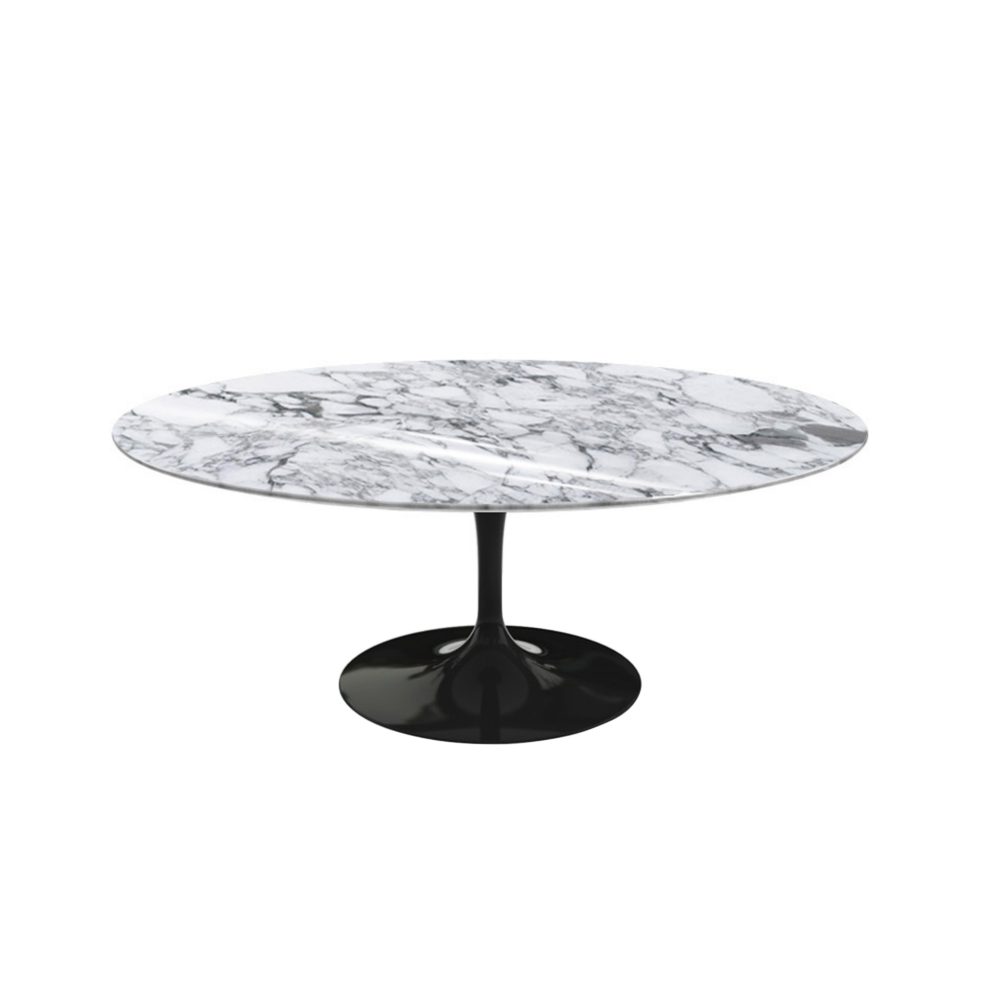 Knoll - Saarinen Oval Table - Soffbord, Svart underrede, skiva i glansig vit Arabescato marmor - Soffbord - Eero Saarinen - Svart - Metall/Sten