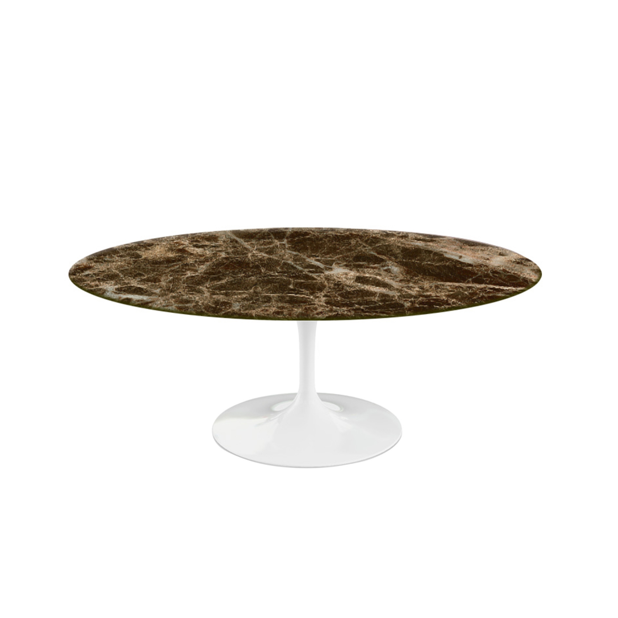 Knoll - Saarinen Oval Table - Soffbord, Vitt underrede, skiva i glansig brun Emperador marmor - Soffbord - Eero Saarinen - Brun - Metall/Sten