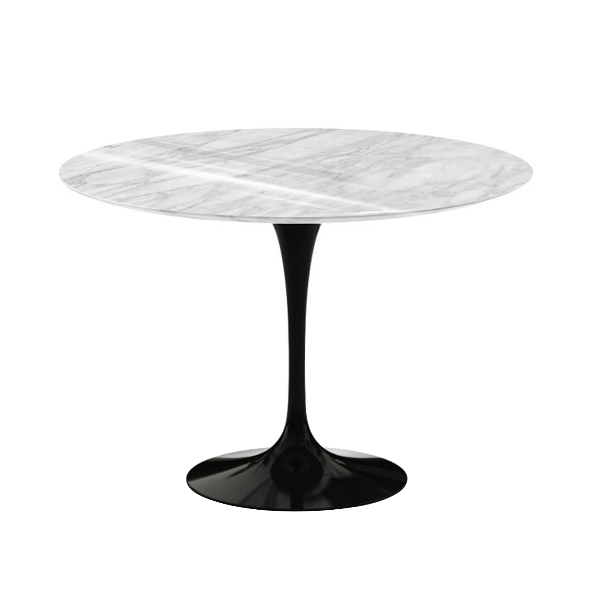 Knoll - Saarinen Round Table - Matbord, Ø 107 cm, Svart underrede, skiva i glansig Statuarietto marmor - Matbord - Eero Saarinen - Vit - Metall/Sten
